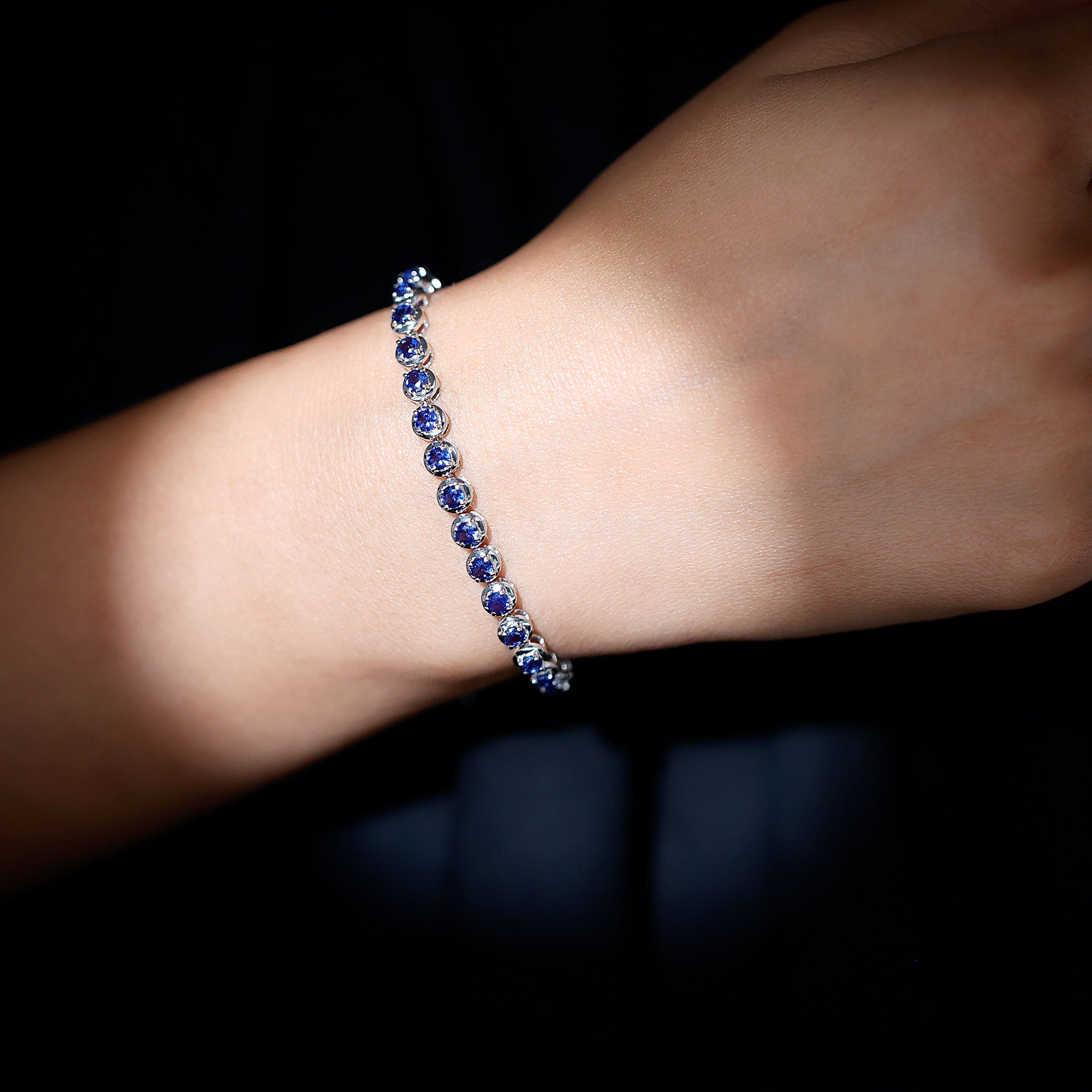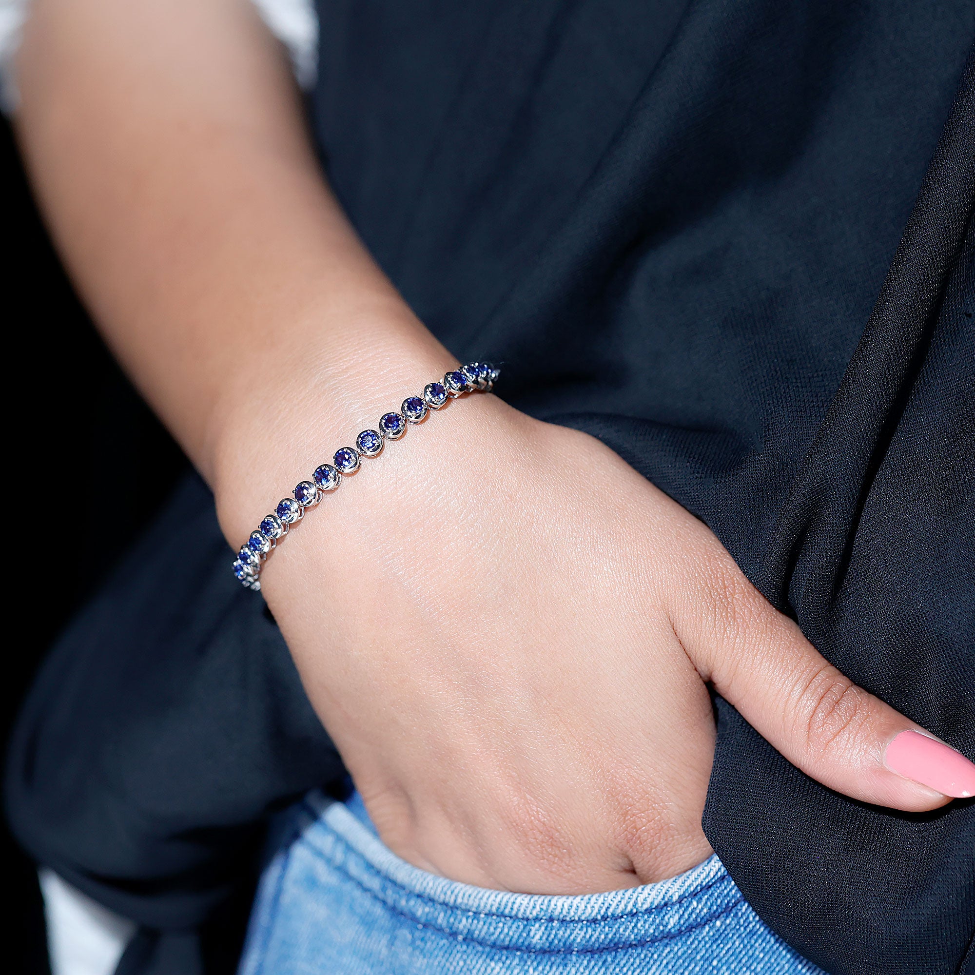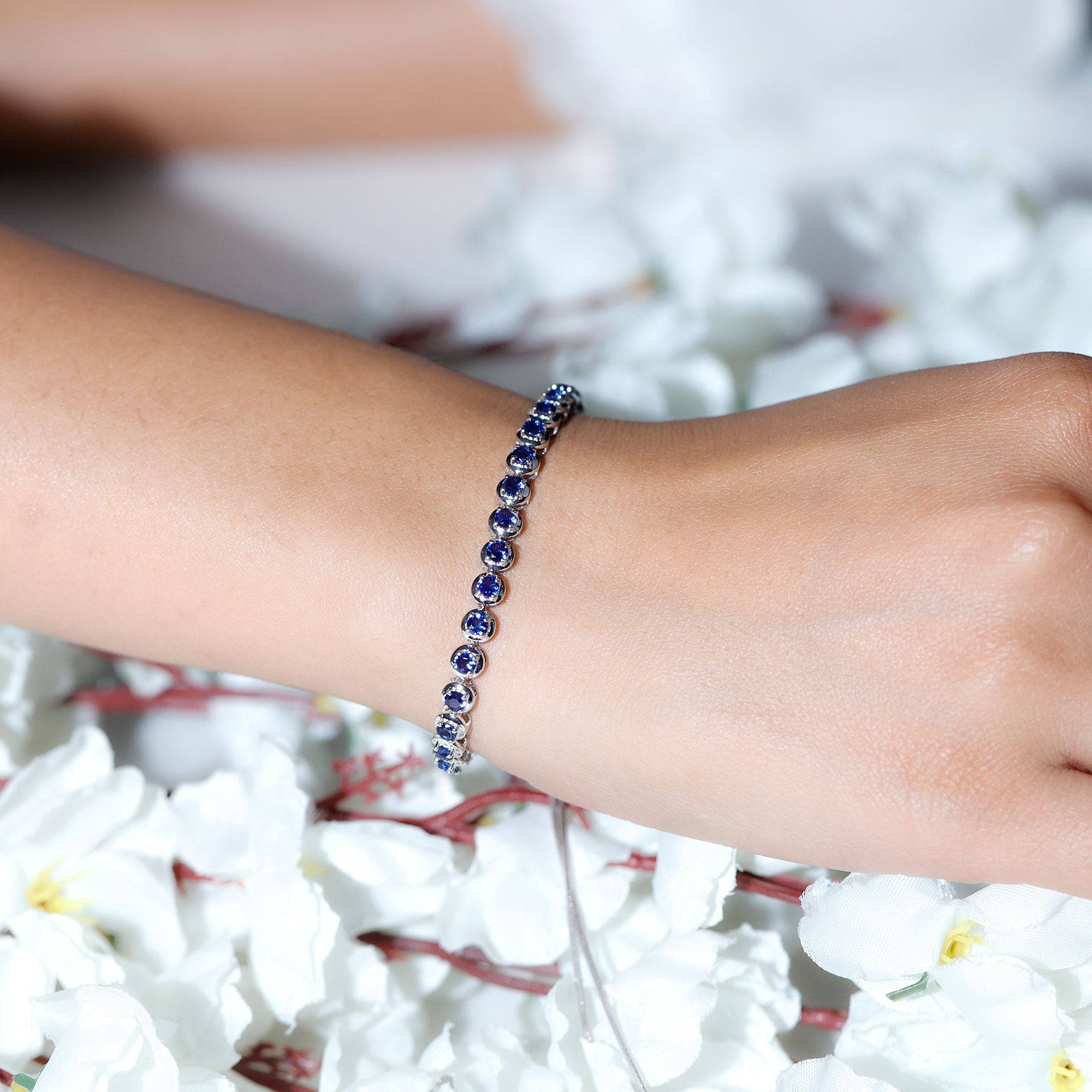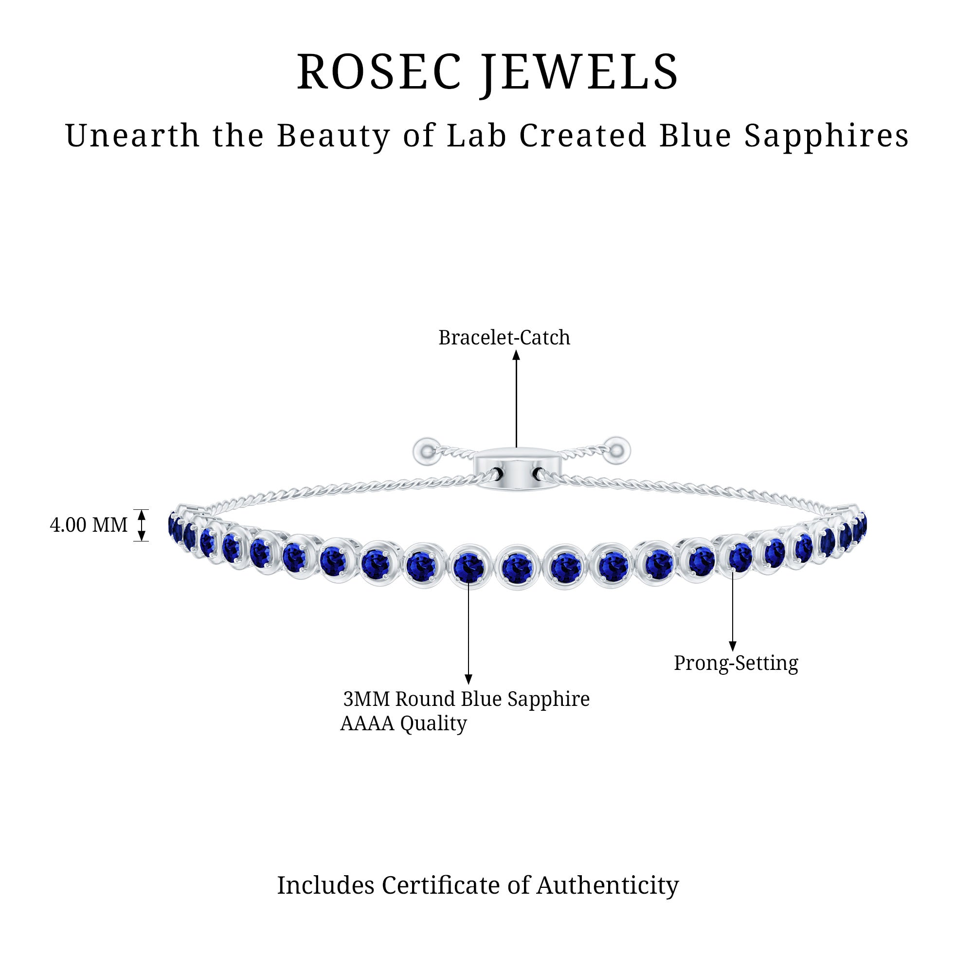 Radiant blue elegance flows effortlessly through this Lab Grown Blue Sapphire Bracelet, designed to bring beauty and charm to any wrist. Half of the bracelet glimmers with round cut lab made blue sapphires arranged in secure prong setting. The Tennis Bolo Bracelet is further enhanced with a sleek rope chain design, adding comfort, flexibility, and a touch of understated sophistication. A sliding bolo clasp allows easy adjustment, ensuring a perfect and secure fit for any wrist size. This thoughtful feature makes the Sapphire Bolo Bracelet practical for everyday wear while still offering a luxurious finish. Crafted with care and attention to detail, each lab grown sapphire showcases AAAA quality brilliance, offering the same rich blue color as natural stones in an ethical and affordable form. Stylish enough to stand alone yet versatile enough to layer with other pieces, this Sapphire Tennis Bracelet adapts to any look, whether worn for weddings, birthdays, anniversaries, or simply to elevate your daily style. Presented in a beautiful jewelry box, it makes a meaningful gift or an elegant addition to your own collection.