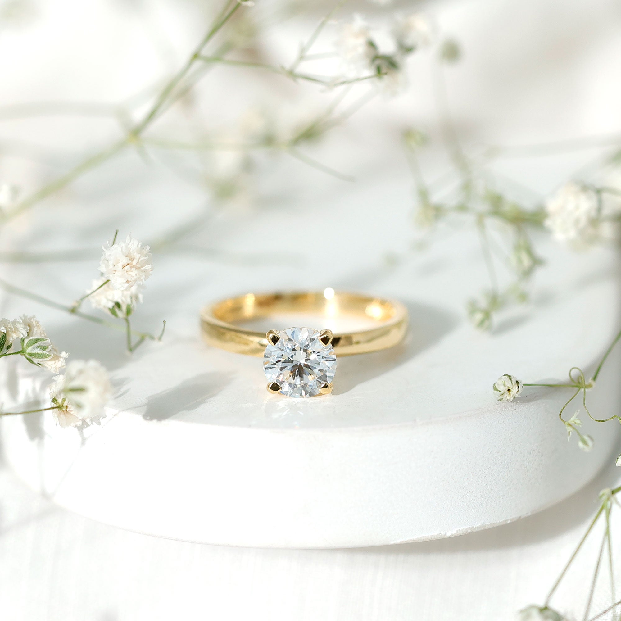 The Solitaire Engagement Ring style is the most classic and timeless way to show off a diamond and is one of the oldest styles of engagement ring. This particular Single Stone Engagement Ring piece is embellished with prong set 7 MM round shaped lab grown diamond of Ef-Vs quality and has a flat edge shank. Handcrafted from high-quality metal, this Round Diamond Ring offers a touch of luxury and sophistication thats sure to capture her heart. As a symbol of your commitment and love, this ring serves as an ideal jewelry piece for any women born in April month, destined to bring boundless joy to your special someone.