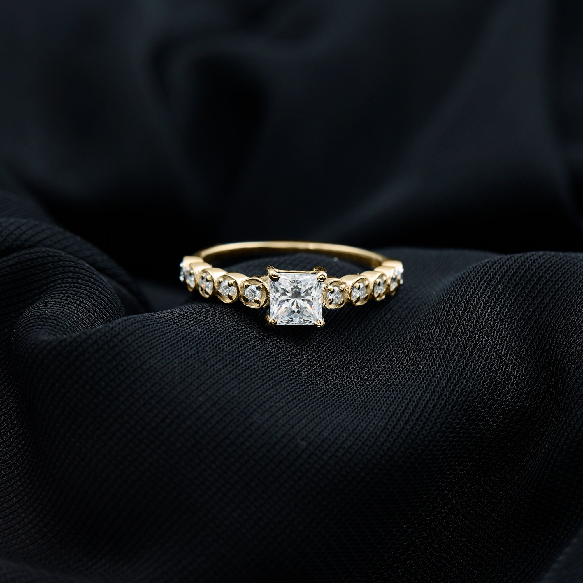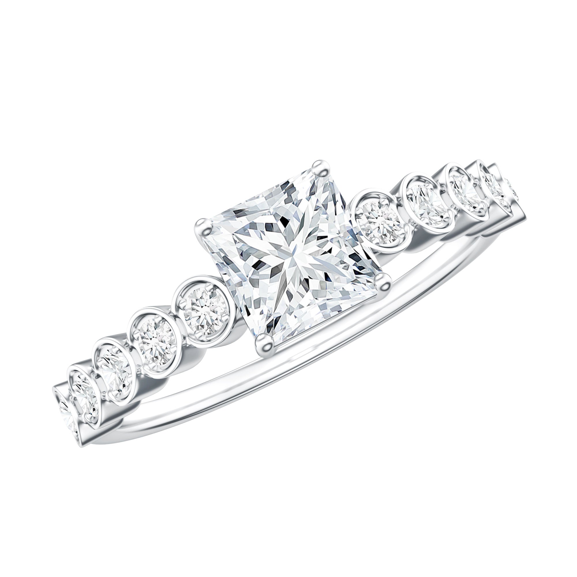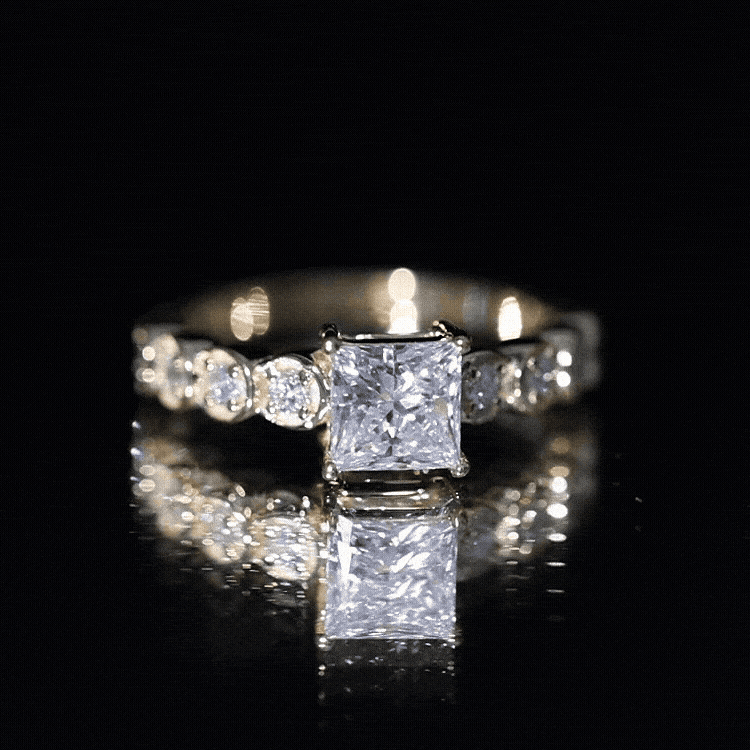 Lab Grown Diamond 5 MM Princess Cut Engagement Ring With Side Stones