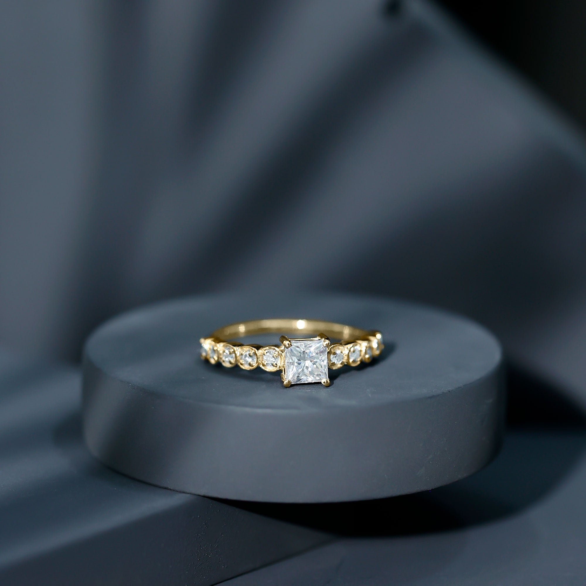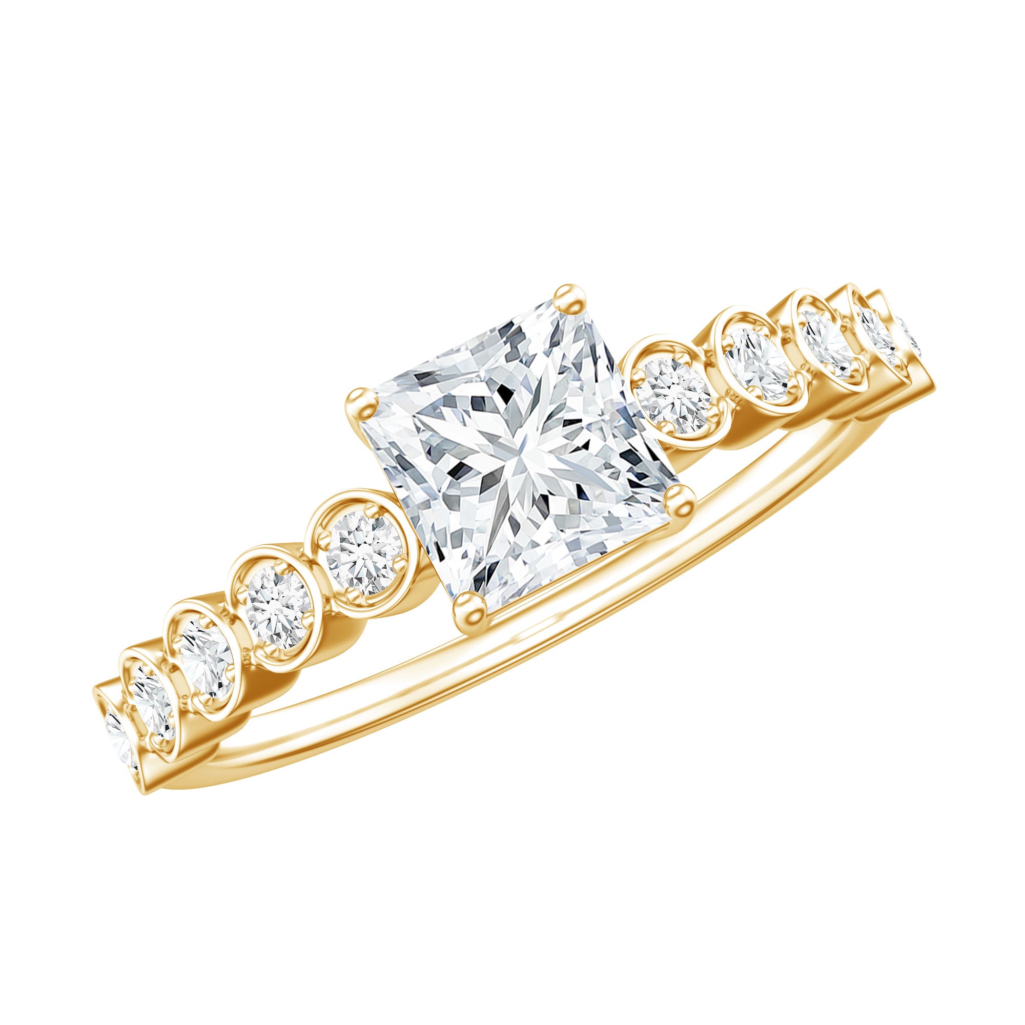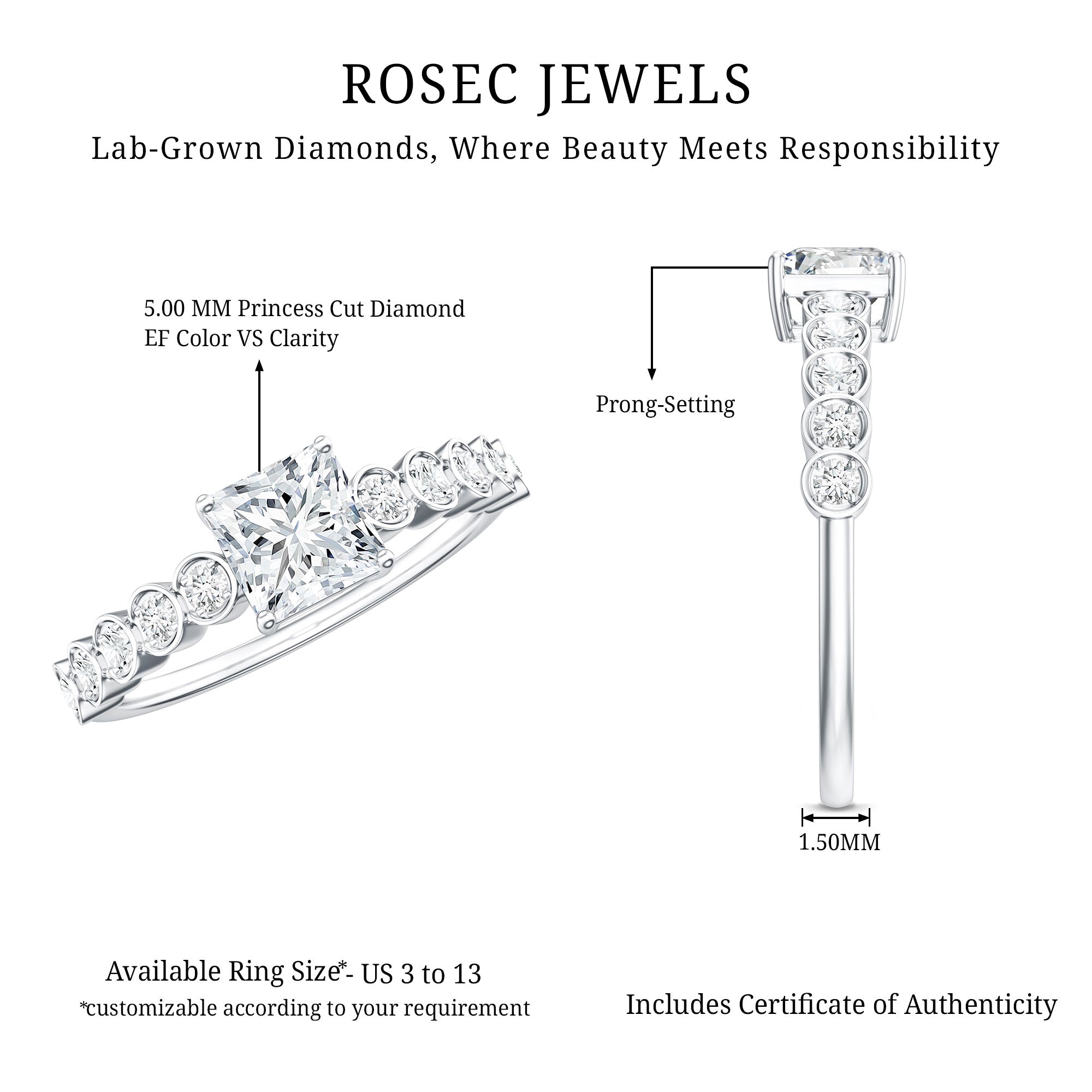Lab Grown Diamond 5 MM Princess Cut Engagement Ring With Side Stones