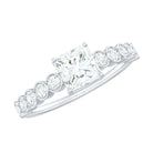 Lock her in your love with a Diamond Proposal Ring that shines as bright as your feelings for her. This elegant Solitaire Engagement Ring features a princess cut lab grown diamond of EF-VS quality in the center, held securely in a 4 prong setting. On either side of the focal stone, a series of round cut diamonds are set individually within a circular frame. This 1 ct Princess Cut Diamond Ring beautifully combines timeless beauty with contemporary artistry, making it an ideal choice for your big day. Your purchase also includes a certificate of guarantee for quality assurance and comes in a chic, protective box packaging, ideal for gifting or safe storage when not in use.
