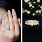 Bold, Brilliant, and Breathtaking, this Lab Grown Diamond 5 Stone Ring is the ultimate statement of elegance and power. Designed with a captivating graduating stones layout, it features five Oval Cut Lab Created Diamonds that increase in size toward the center, creating a smooth, eye-catching flow of brilliance across your finger. Each stone is meticulously handset in Prong Setting, allowing maximum light reflection and sparkle. The Diamond Statement Ring is crafted in top-notch metal with a sleek band that enhances the brilliance of stones while offering a modern yet timeless appeal. Whether you are marking a milestone, celebrating a personal achievement, or simply indulging in your love for luxury, this Oval Diamond Ring for Women makes an unforgettable impression. Ethically crafted with lab made diamonds, this Wedding Anniversary Ring is not just stunning but also sustainable and kind to the planet.