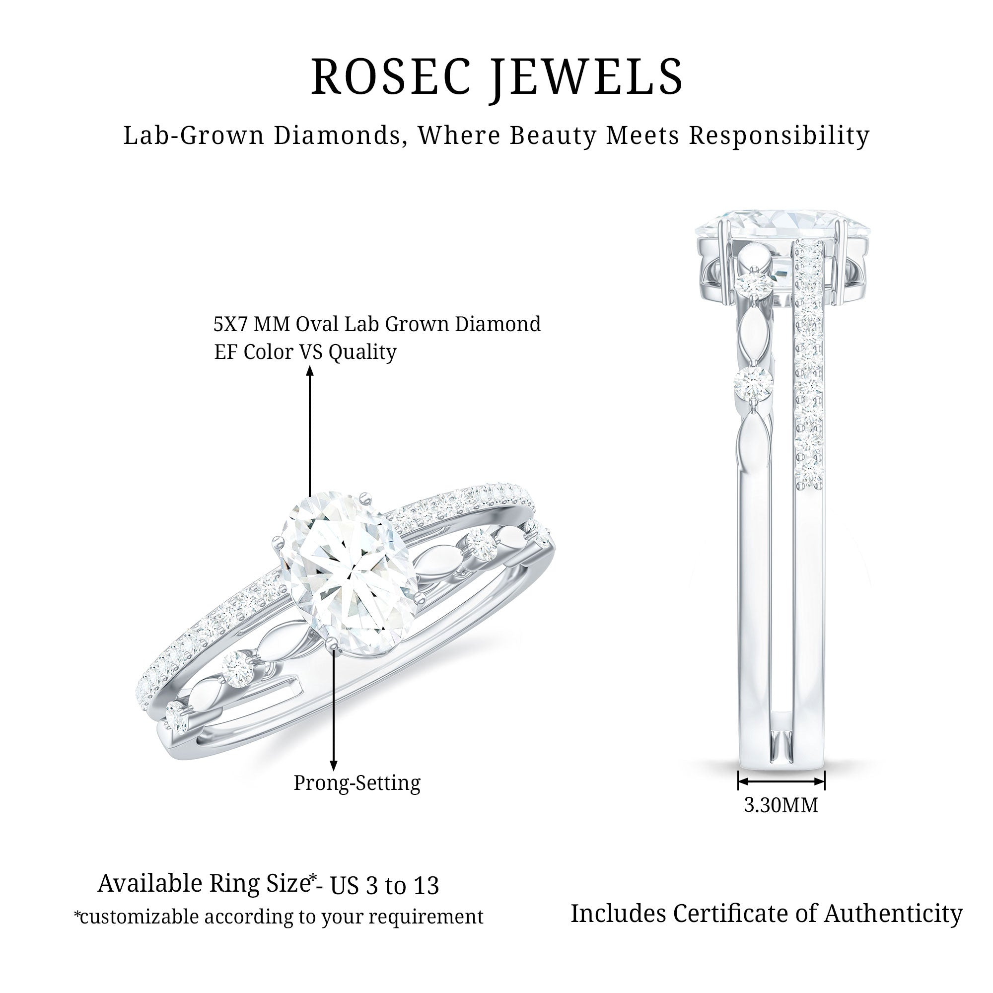 Lab Grown Diamond 5X7 MM Oval Shaped Double Band Engagement Ring