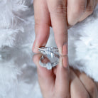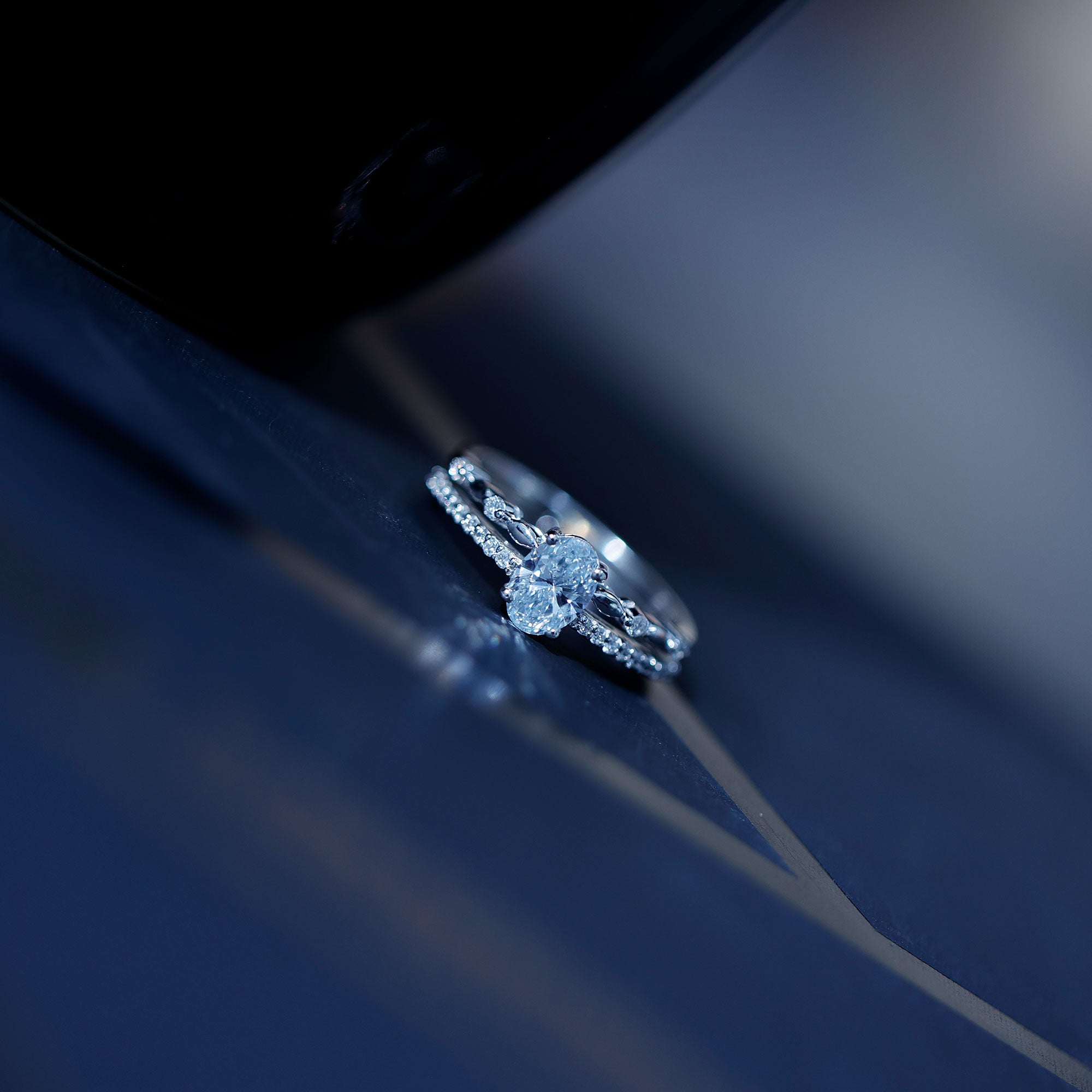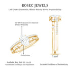 Take her heart away with the stunning details of this Solitaire Engagement Ring features a 5X7 MM oval shaped diamond (EF-VS quality) securely set in a prong setting. Its unique double band shank adds a touch of artistry, with one band decorated with a row of surface prong set round cut diamonds for a continuous sparkle, while the other showcases delicate marquise metal motifs and gemstones set alternatively for a contemporary look. Together, these elements in this Oval Diamond Ring create the illusion of a stackable ring while maintaining the comfort of a single band. Designed to symbolize everlasting love, this Lab Grown Diamond Engagement Ring is a perfect choice for the bride who values elegance, uniqueness, and timeless beauty.