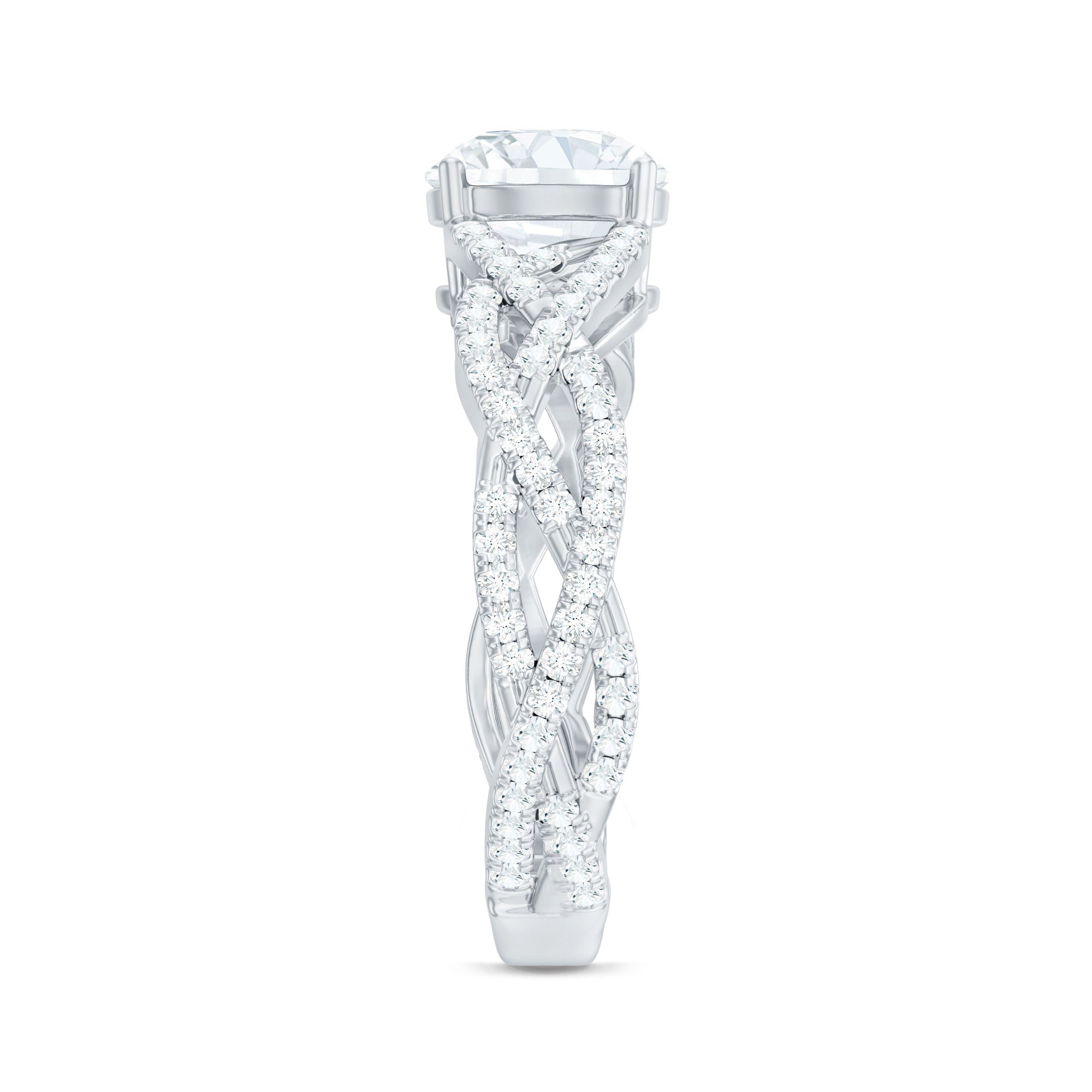 Steal her heart by presenting this stunning Diamond Engagement Ring, an excellent choice to commemorate your love. The band of this Crossover Ring features three elegantly intertwined strands, creating a braided appearance, and is embellished with sparkling round cut diamonds. This captivating design highlights a central 2 carat Diamond of round shape, securely held in a delicate four-prong setting. Both charming and fashionable, this Criss Cross Engagement Ring represents everlasting love and reflects a sophisticated taste. This Circle Engagement Ring serves as a thoughtful and budget-friendly gift for your beloved. Crafted with ethically sourced, lab-grown diamonds, it provides the luxury of fine jewelry while remaining environmentally conscious.