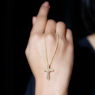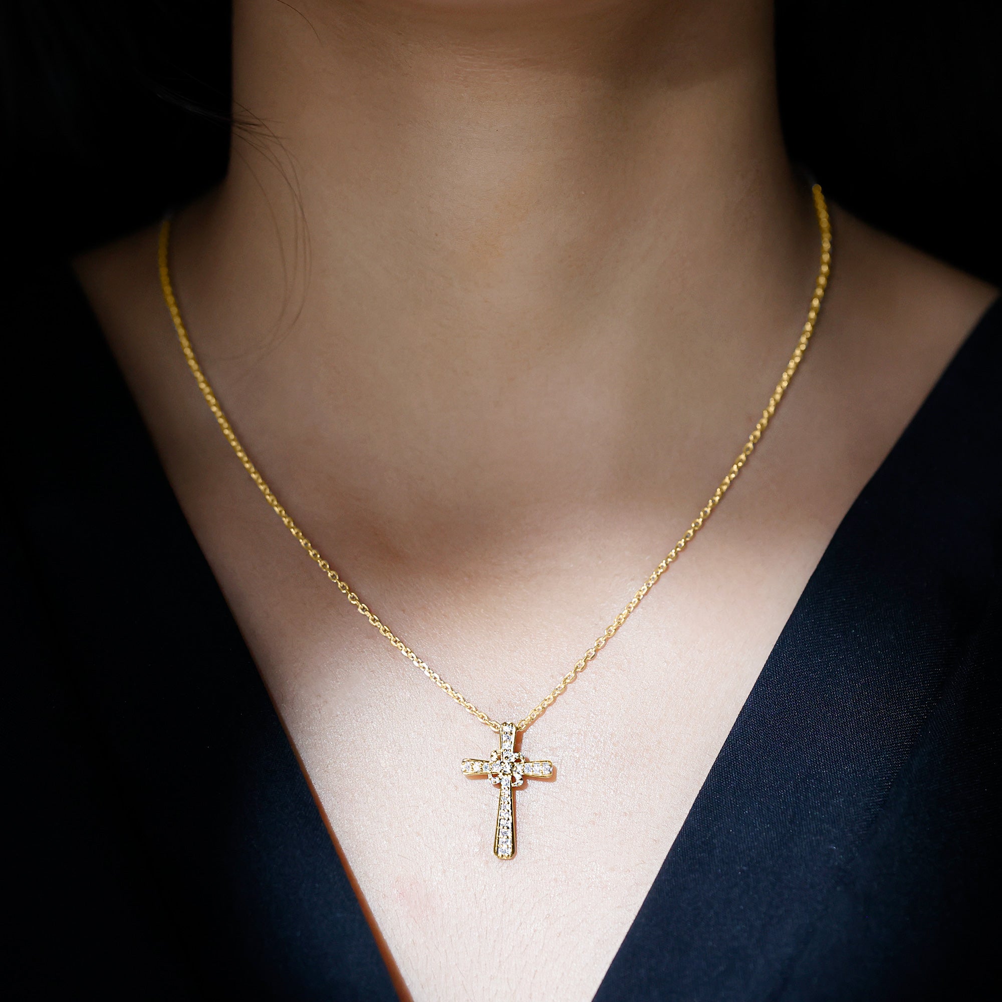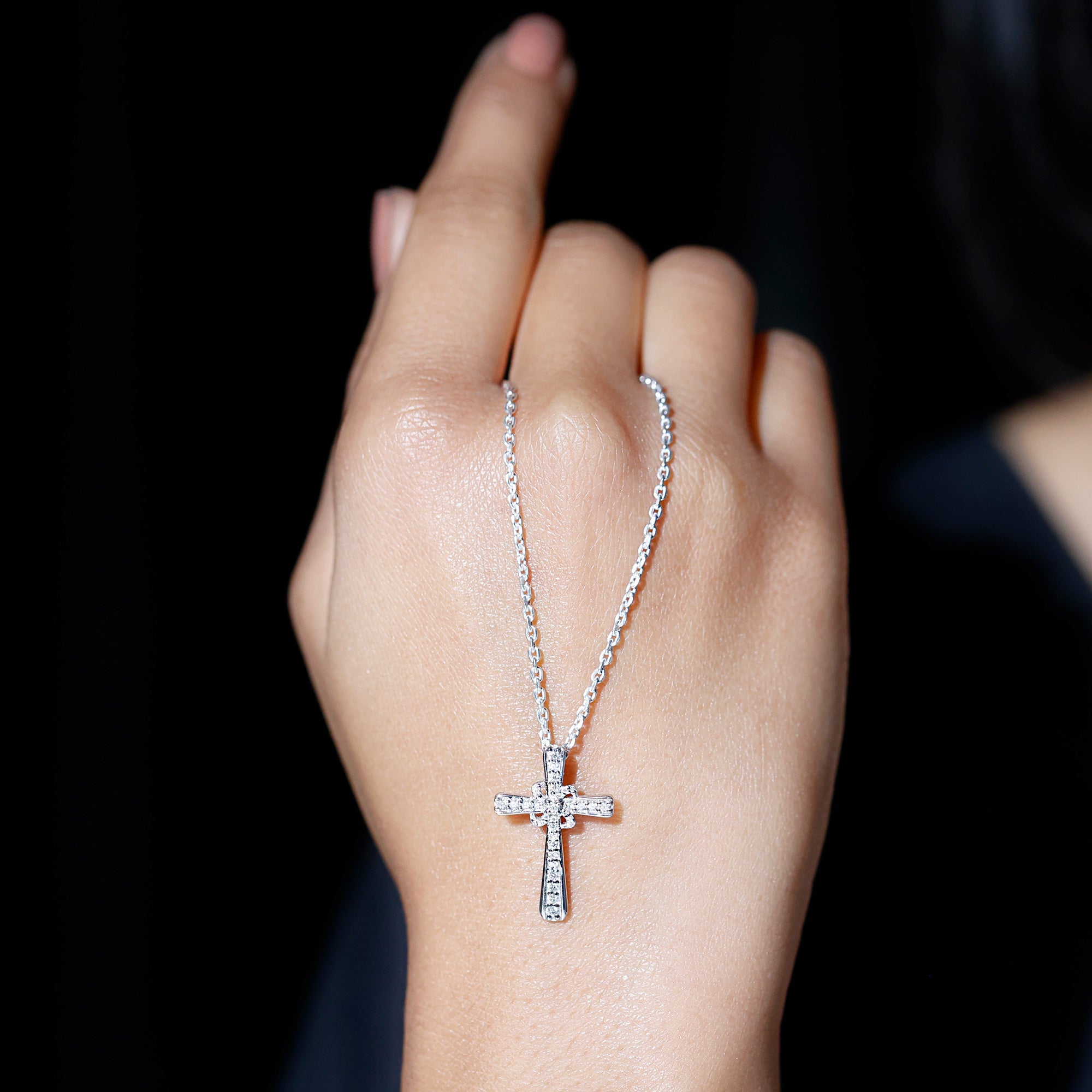 Make a statement without saying a word - this breathtaking Diamond Cross Pendant does all the talking. This beautifully designed Christian Pendant features a hidden bail, giving it a smooth and seamless look. The cross is decorated with sparkling lab grown diamonds that gradually increase in size, making it even more eye-catching. At the center, a delicate flower inspired design encrusted with diamonds adds a touch of elegance. This Diamond Pendant Necklace is as versatile as it is stunning. Whether it is a christmas, birthday, anniversary, religious event, or just a special gift for a loved one, this Cross Necklace is a timeless symbol of faith and beauty.