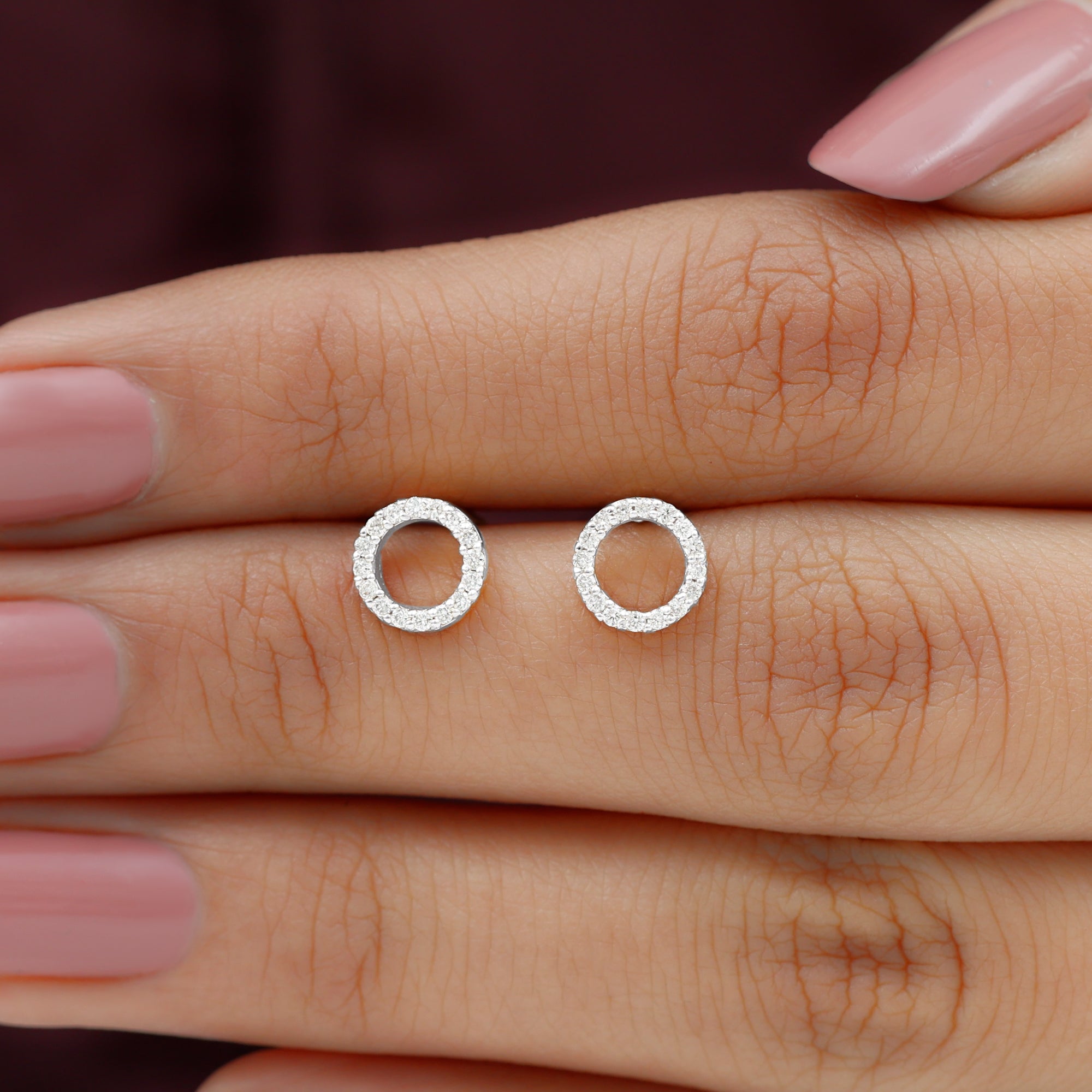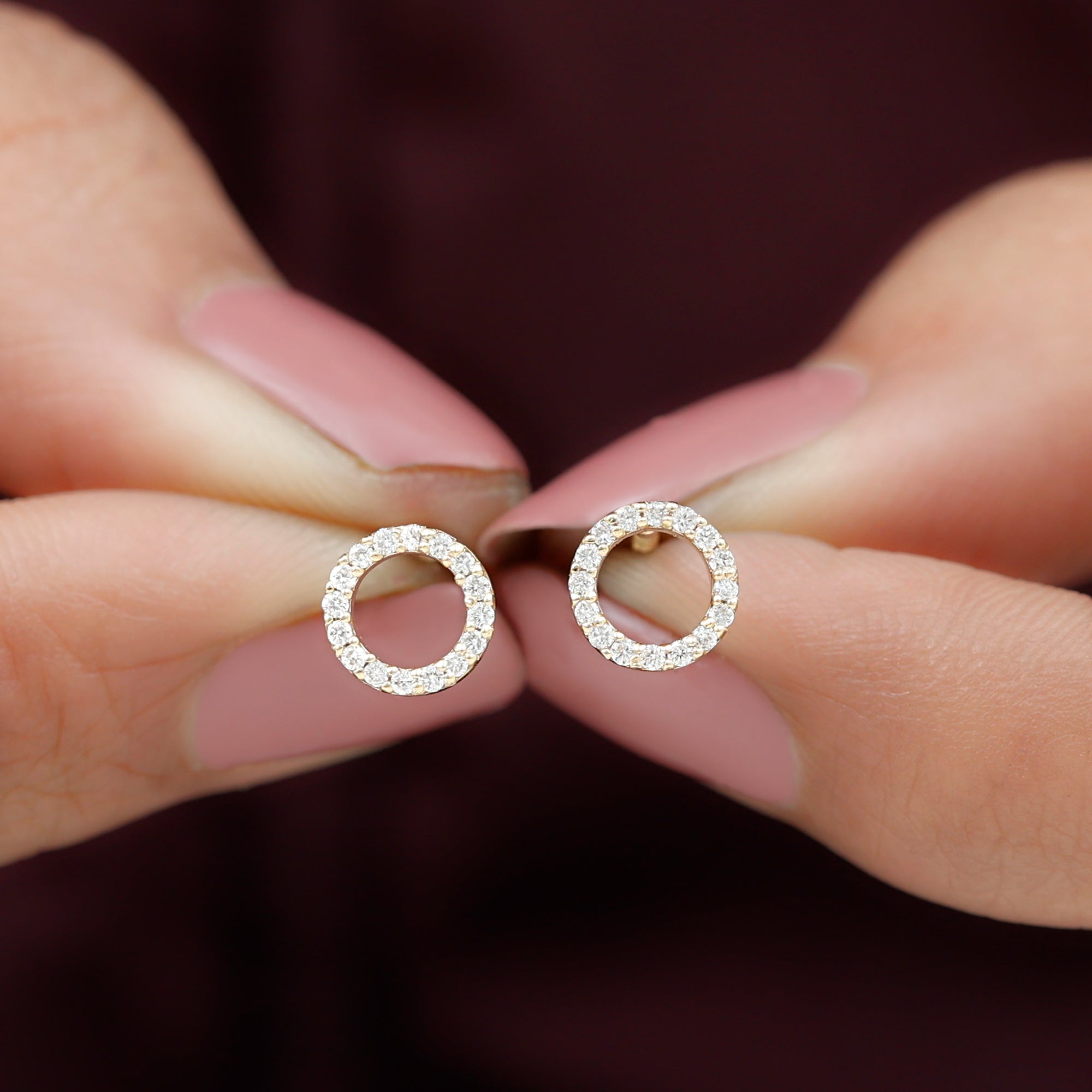 Lab Grown Diamond Circle Stud Earrings With Screw Back