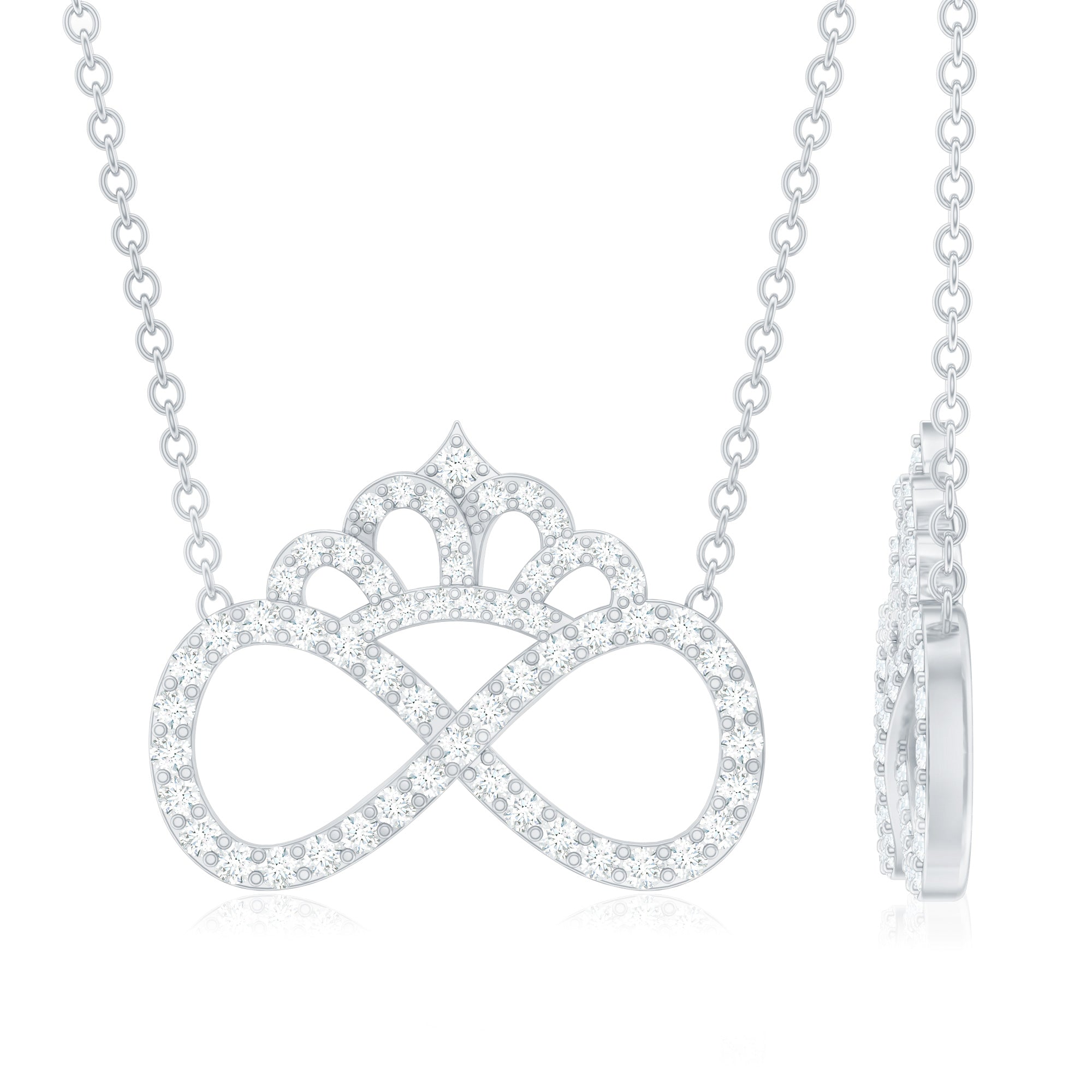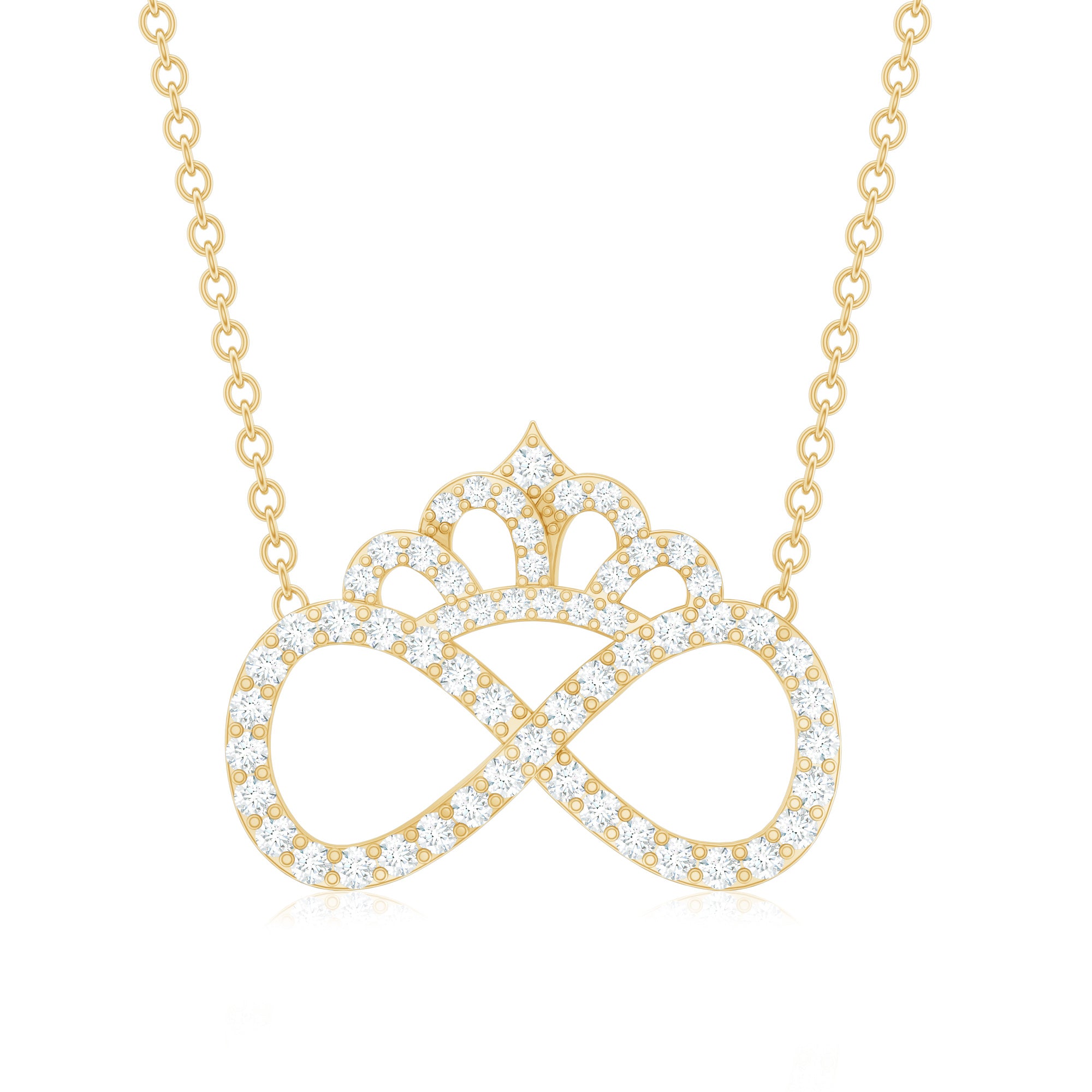 Sparkle meets eternity in this dazzling Infinity Sign Necklace, where every diamond whispers luxury and every curve tells a story of timeless beauty. This Minimalist Necklace has an infinity symbol encrusted with round cut lab made diamonds, representing eternal love and endless possibilities. Adding a regal touch, a delicate diamond-studded crown motif is set at the top of infinity. Not only does this Diamond Necklace exude luxury, but it also reflects a conscious choice, handcrafted with lab grown gemstones, it is eco-friendly and affordable. It is a perfect mix of timeless beauty and royal charm, giving you all the equal sparkle of a mined diamond.