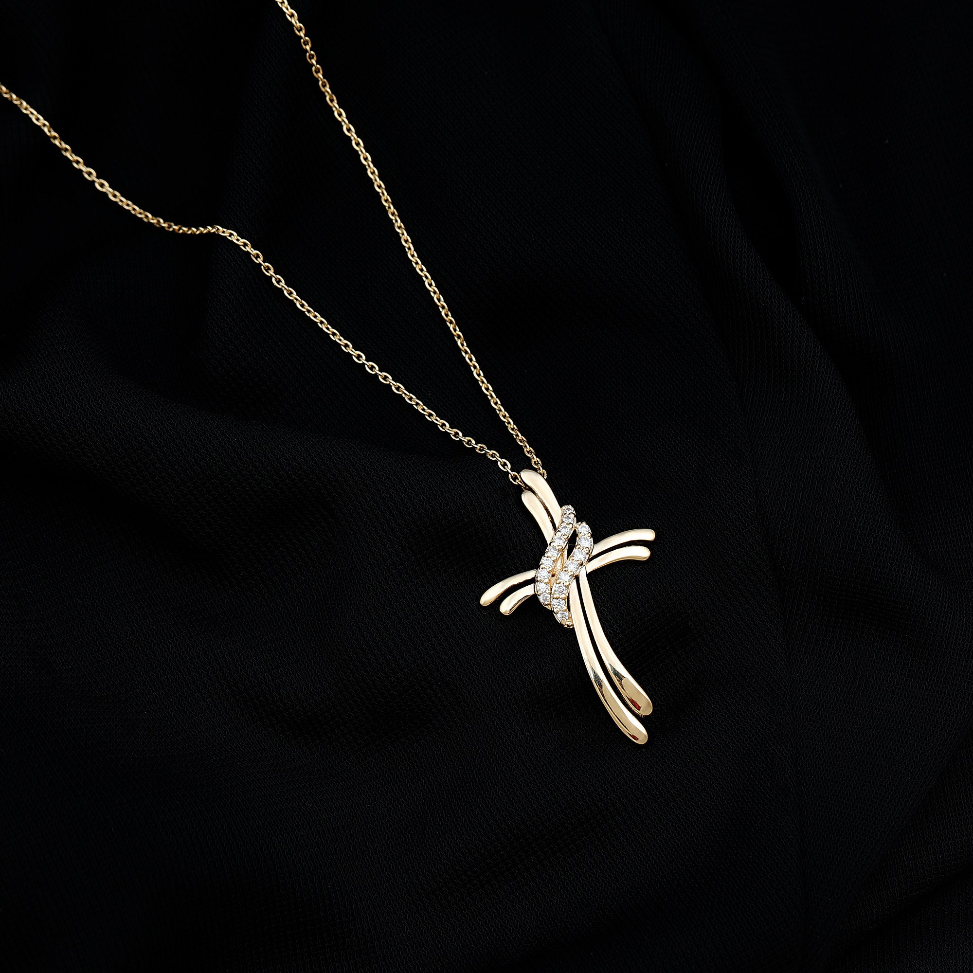 If you are looking for a piece of jewelry that is both meaningful and beautiful then your search ends here, our Diamond Cross Necklace is a great mix of faith and modern style. This Diamond Pendant Necklace features a cross symbol in a soft ribbon-like structure, giving it a flowing appearance. At the center, two sparkling lab grown diamond studded twists gracefully wrap around the symbol, adding a brilliant contrast to the smooth metal. The Cross Pendant is an ideal gift for Christmas, anniversaries, Valentines Day, and birthdays. Whether you are heading to the office, dressing up for a special occasion, or simply elevating your everyday style, this Christ Necklace will give you the perfect look.