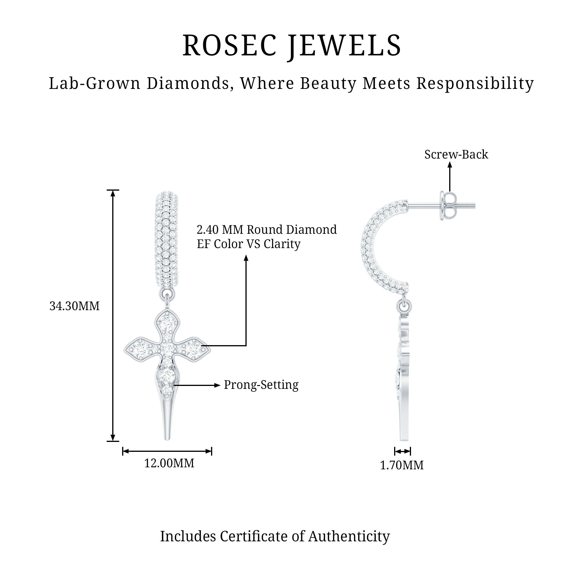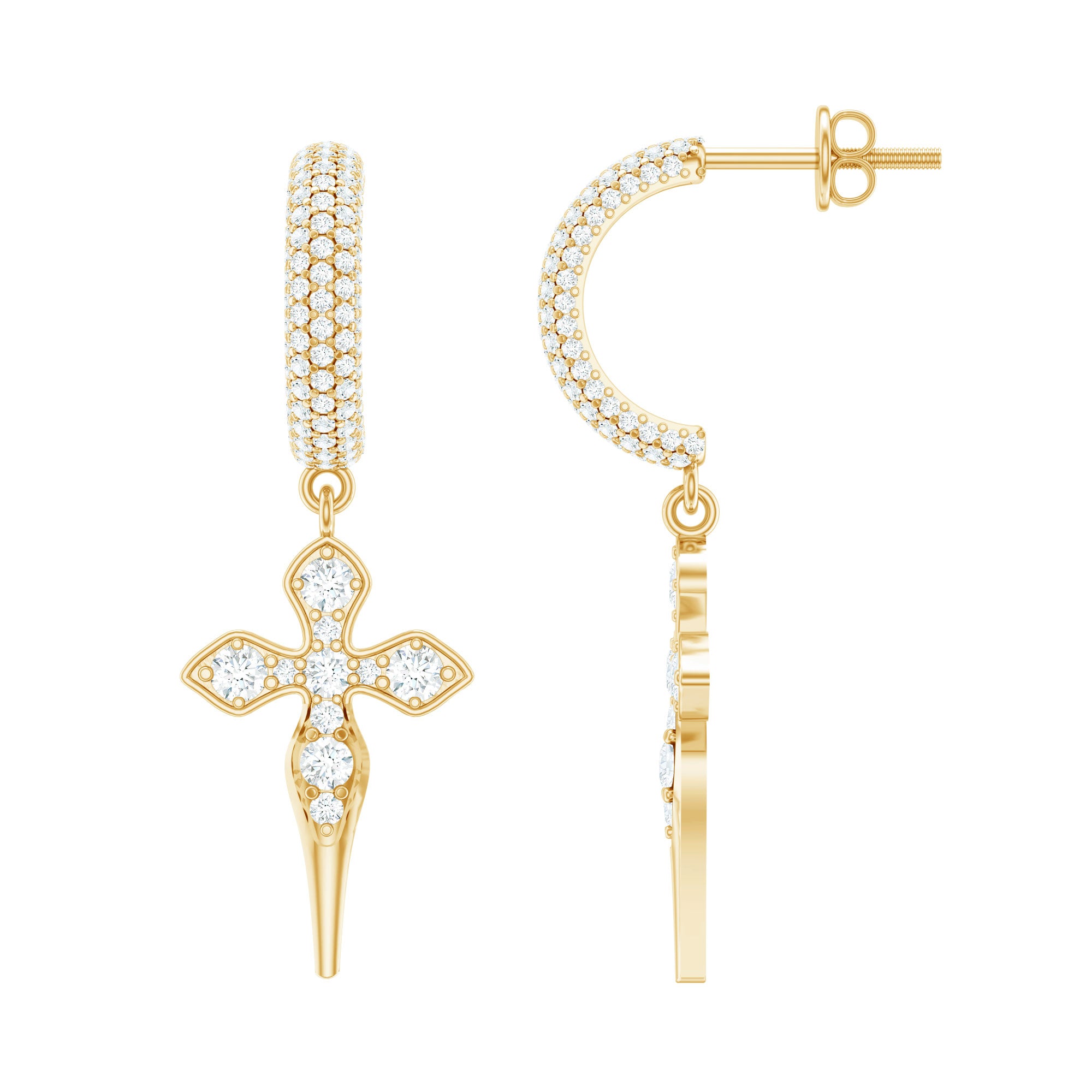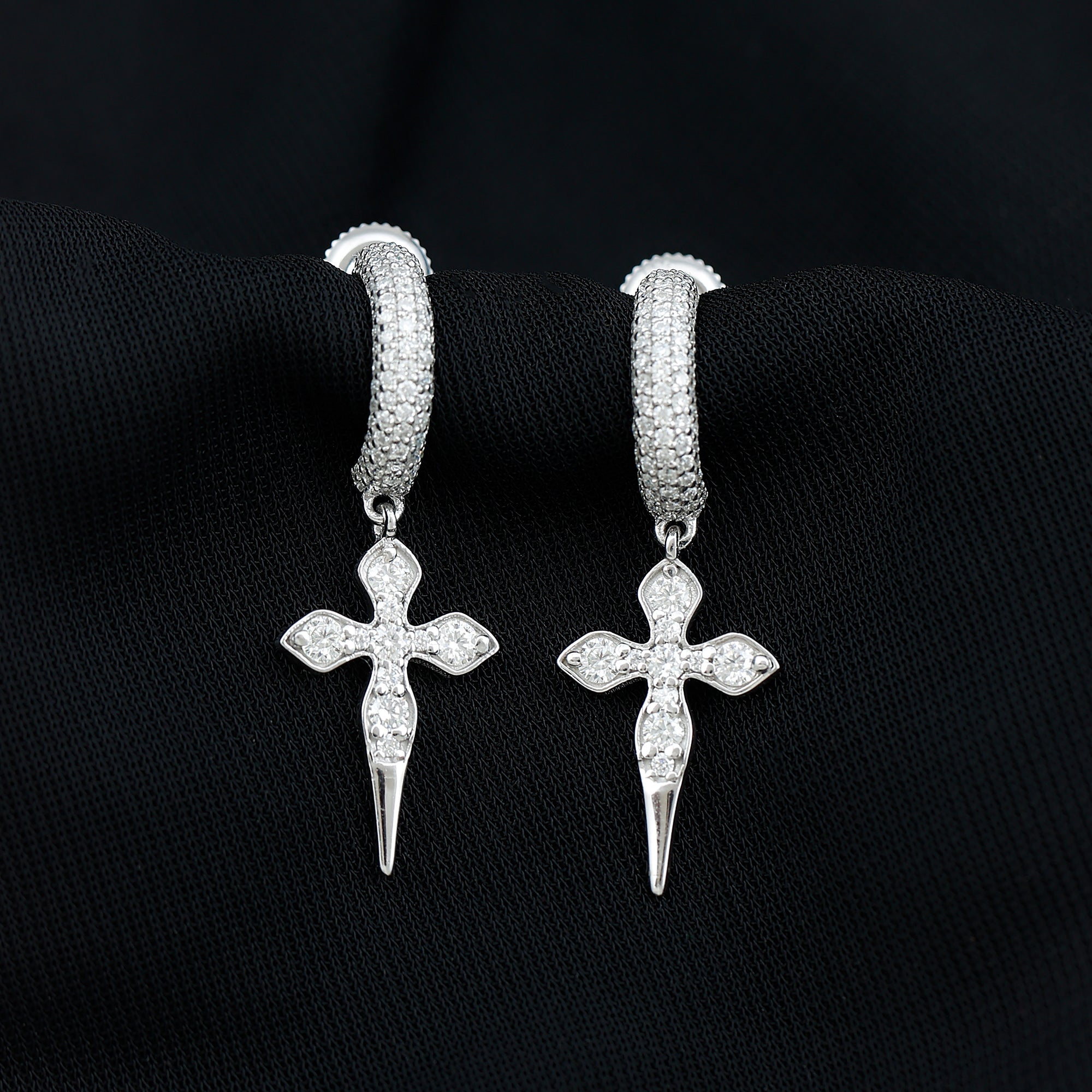 Lab Grown Diamond Designer Cross Earrings With Screw Back