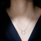 Welcome to a world where your uniqueness is celebrated through the brilliance of diamonds. Our Diamond Necklace is a delicate testament to your individuality and elegance. Fashioned from the finest metal, this Eternity Necklace features an open circle created with curved bars adorned with dainty round cut diamonds of EF-VS Quality. Whether it’s a quiet morning coffee date, a night out with loved ones, or those milestone celebrations, this Open Circle Necklace will stack gently on your neckline as a symbol of your inner sparkle. Every gemstone in this Round Necklace is lab grown and it comes with a certificate of authenticity, giving you complete peace of mind about your purchase.
