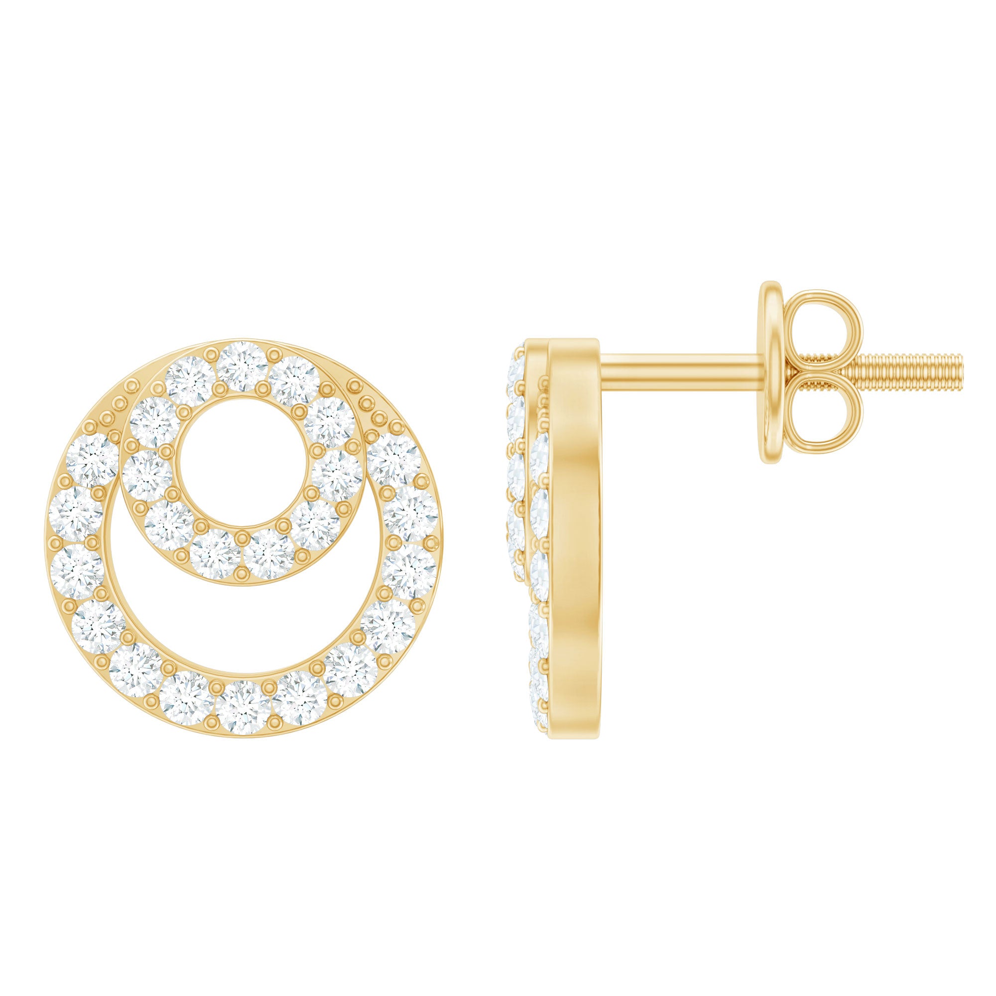 To make the celebration of love beautiful and sparkling, these Diamond Studs from Rosec Jewels can be a classic choice. These Double Circle Earrings are handcrafted with Round Shape Lab Grown Diamonds embedded in Prong Setting. These Simple Earrings will perfectly dazzles with EF-VS Quality Diamonds. Rosec Jewels Earrings will sit in place for the whole time these are adorned with its safe and secured Screw Back Closure. We will be shipping the Pair of Earrings in Signature Jewelry Box packaging.