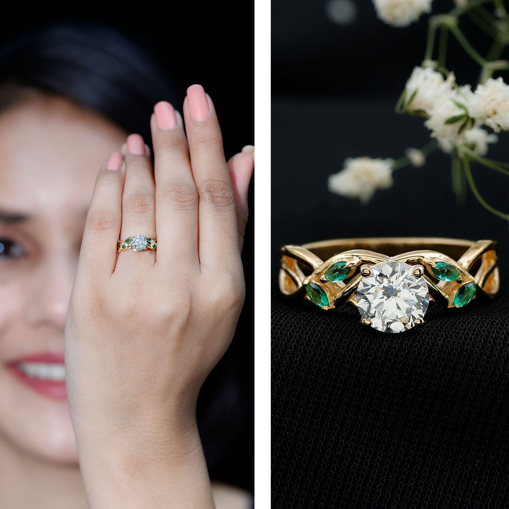 Lab Grown Diamond Engagement Ring With Emerald