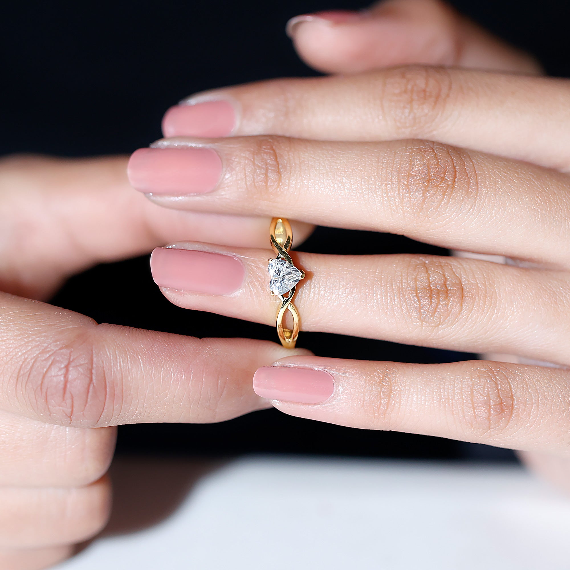 Moments of love feel even more special when a ring carries meaning, and this Lab Grown Diamond Promise Ring is made exactly for that. Features a sparkling 5 MM heart shaped lab grown diamond, held securely in prong setting that lets its shine stand out. The diamond rests on a graceful crossover infinity shank, symbolizing a bond that stays strong through every chapter of life. Designed for women who prefer simple, elegant, and timeless jewelry, this Diamond Heart Ring works beautifully as a promise ring, a commitment ring, or even a minimal engagement ring. Its low-profile design keeps it comfortable for everyday wear while still looking meaningful. Crafted with care and offered in multiple metal choices, the Diamond Solitaire Ring gives you the freedom to match her style perfectly. It also comes packed in a premium jewelry box, making the moment you open it together feel memorable and heartfelt. Whether you are expressing your promise, marking a milestone, or planning a romantic surprise, this Heart Promise Ring carries your emotions in the most genuine way.