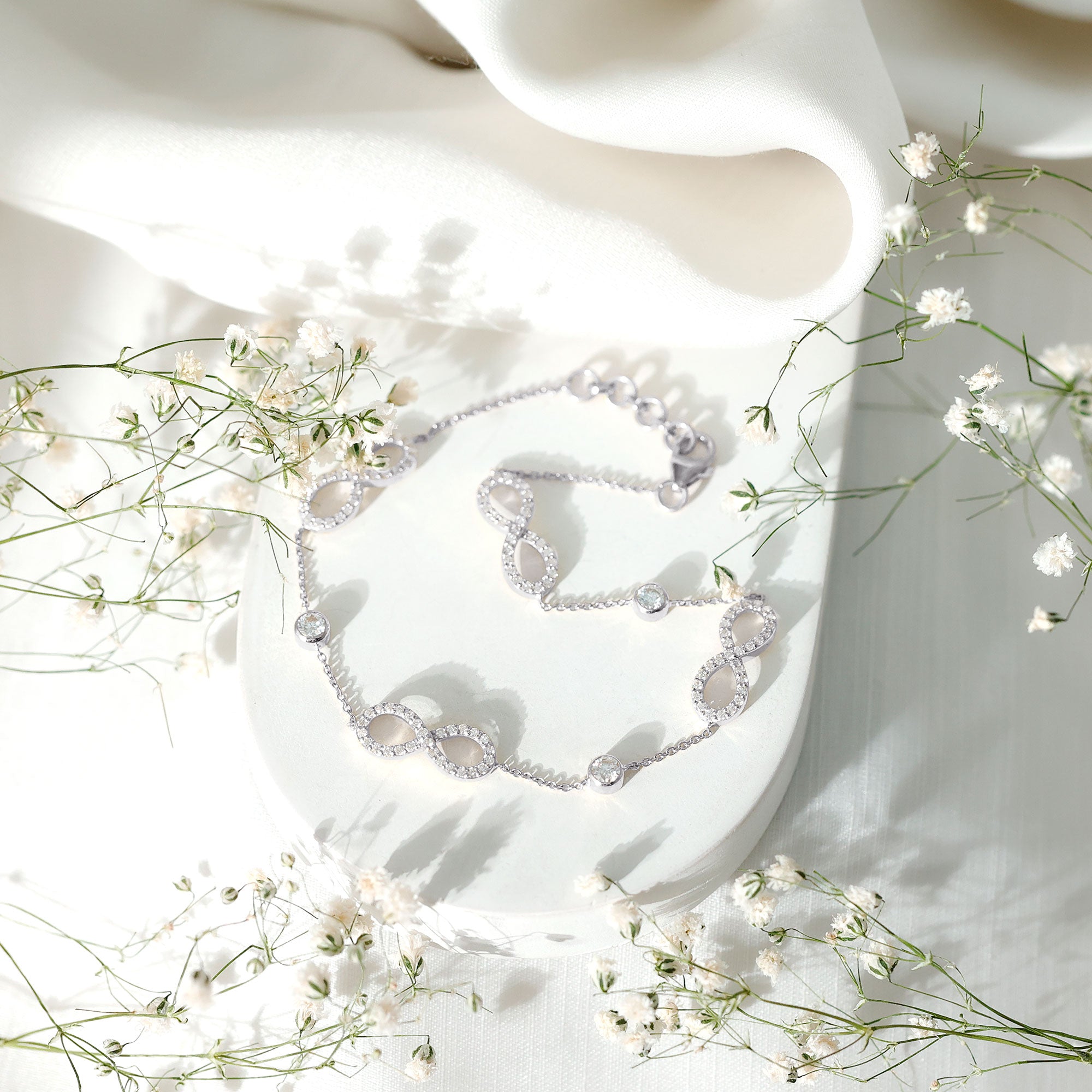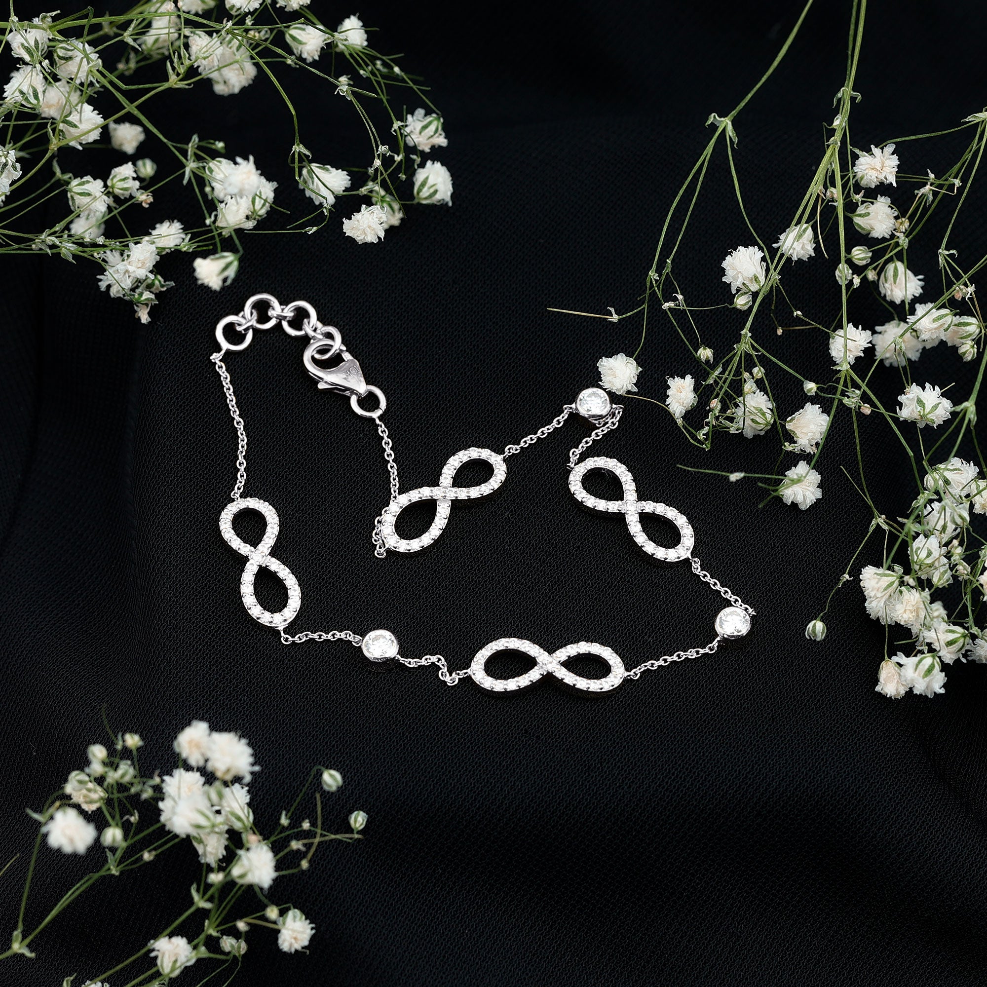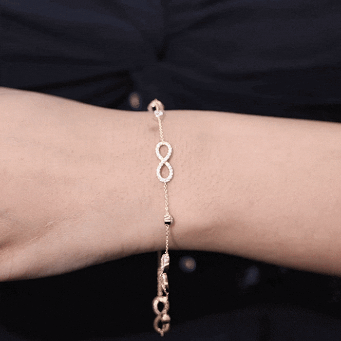 This Diamond Infinity Bracelet symbolizes forever and features an elegant design, making it perfect for special occasions. Its stunning look reflects unwavering devotion and lasting love. The bracelet is embellished with delicate bezel set lab-grown diamonds that alternate with infinity knots over a cable chain. The infinity design is enhanced with round brilliant cut diamonds. Celebrate the lasting love represented by this Infinity Knot Bracelet, which has an elegant loop and timeless design. It holds a deeper meaning, honoring the beauty and significance of an infinity-inspired piece that makes a thoughtful gift. This Station Chain Bracelet signifies the strength of an unbreakable bond and serves as a reminder of the love you share with those who are most important to you.