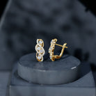These Diamond Infinity Earrings are a true symbol of timeless beauty and endless love. The twisted design showcases a classic yet modern touch, with shimmering round cut diamonds of EF-VS Quality meticulously set to enhance their brilliance. The bigger lab grown diamonds are nestled in heart-prong setting, adding a subtle yet romantic detail to the design. The latch-back ensures a seamless fit, offering effortless wear, these Diamond Huggie Earrings are perfect for wearing long hours without discomfort. Whether you are dressing up for a casual dinner, attending a wedding, or adding a refined touch to your daily ensemble, these classic Small Hoop Earrings are the perfect choice.