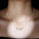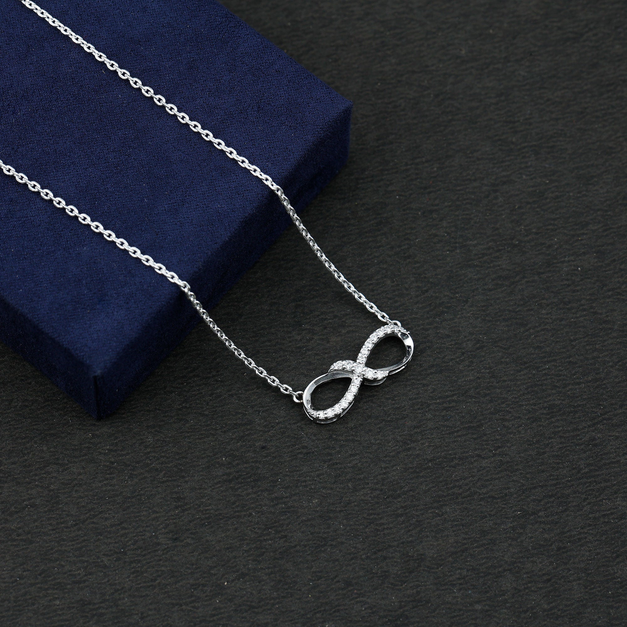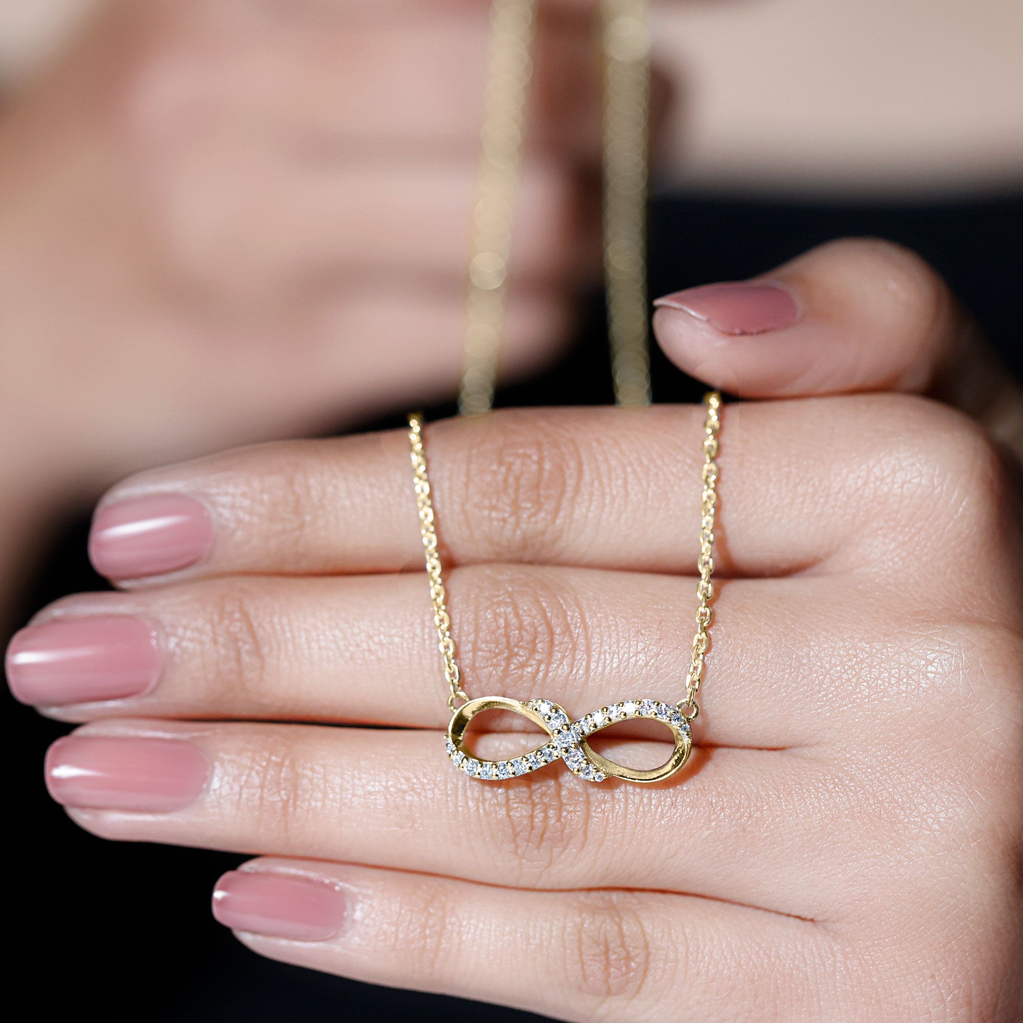 Show your never ending love to your lady by presenting this stunning Diamond Infinity Necklace. This Minimalist Necklace features an infinity loop decorated with dainty round shaped pave set diamonds. The Lab Grown Diamond Pendant Necklace is a classic and designer piece of jewelry perfect for any occasion. Whether you are celebrating an anniversary, a milestone, or simply expressing your love, this Forever Necklace is the perfect symbol of eternity. Gift her something that shines as brightly as she does, because she deserves nothing but the best.