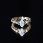 Representing eternal love, this Lab Grown Diamond Engagement Ring beautifully combines timeless meaning with dazzling brilliance. With its unique significance, this Solitaire Engagement Ring features an enchanting design that captures the pure essence of your love. The Celtic Knot Engagement Ring symbolizes unity and eternity, showcasing an unbreakable bond. It features a 5X10 MM Marquise Cut Lab Grown Diamond set in Prong Setting, with Celtic knot details flanking the gemstone. The engraved detailing on the band adds a touch of vintage charm, drawing glamorous attention. This Marquise Diamond Ring signifies the intertwined lives and destinies of two souls, representing a bond that lasts forever. The EF Color VS Clarity Diamond boasts exceptional brilliance and fire, embodying a mystical and everlasting friendship. We offer a range of ring sizes from 3 to 13 according to US Standards and provide a free ring sizer kit upon request before shipping the final product. This Diamond Vintage Ring is a stunning jewelry choice for your Girlfriend, Mother, Fiancée, or Wife.