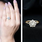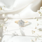 Rosec Jewels gorgeous lab grown Diamond Ring is a perfect symbol of love and new beginnings. Designed in a beautiful floral pattern, it features a dazzling round cut diamond at the center, surrounded by smaller diamond halo. Each gemstone is held securely in prong setting, allowing it to shine brilliantly from every angle. This Flower Engagement Ring combines timeless beauty with modern charm, making it an ideal choice to celebrate your special day. It offers a wide range of metal color options and is also available in various ring sizes so, you can create a masterpiece for her straight from your heart. This Diamond Engagement Ring comes with a certificate of authenticity and a signature jewelry box so, you can store it safely when not in use.