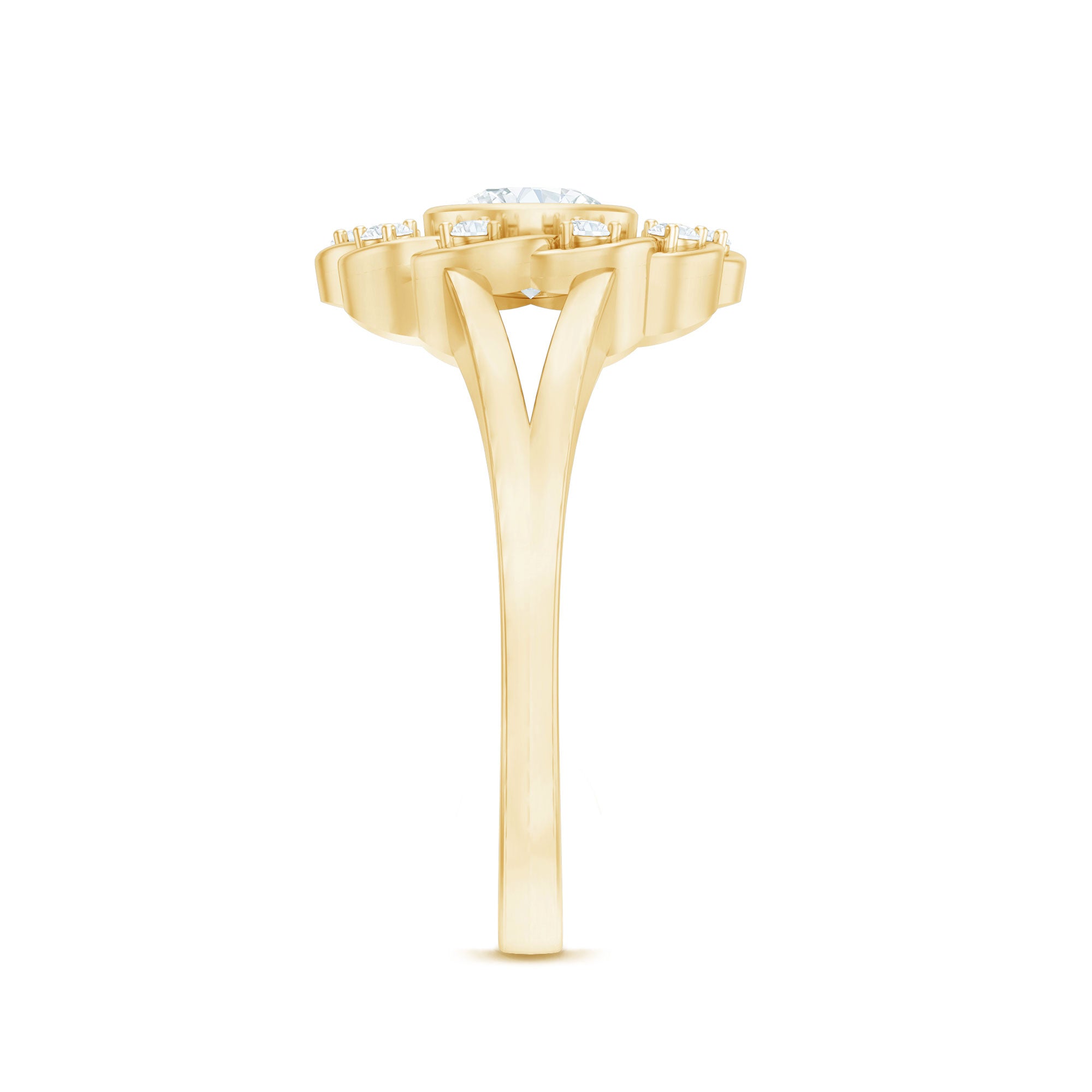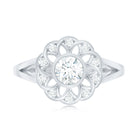 The Floral Engagement Ring is a breathtaking ode to the beauty of natures blossoms. A 5 MM Round Shape Lab Grown Diamond gemstone set as a center stone in Bezel Setting surrounded by smaller stones. This ring celebrates a love that blooms, its detailed craftsmanship captures the essence of romance and elegance. A perfect choice for those who seek an engagement ring as unique and enduring as their love story.