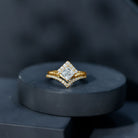 This stunning Lab Grown Diamond Wedding Ring Set is a lavish tribute to love, crafted to honor your unforgettable moments. It showcases a gorgeous 5 MM Princess Cut Lab Grown Diamond set in Prong Setting, surrounded by a Half Halo of sparkling gemstones. Accompanying the engagement ring is a beautifully designed chevron wedding band, adorned with delicate round cut diamonds that twinkle from every angle. To enhance the brilliance and create a dazzling effect, this Lab Created Diamond Bridal Ring Set ensures your love shines as brightly as the ring itself. Representing commitment, this Stackable Wedding Set captures your love story perfectly, making it an exquisite choice for your beloved. Simple yet eye-catching, this Engagement Ring with Wedding Band Set adds a touch of sparkle with a dramatic flair. Rosec Jewels has meticulously crafted this Princess Cut Engagement Ring Set in a range of comfortable and perfectly fitting sizes. We offer sizes according to US Standards, from 3 to 13. Upon request, we can also provide a free ring sizer before shipping the final product.