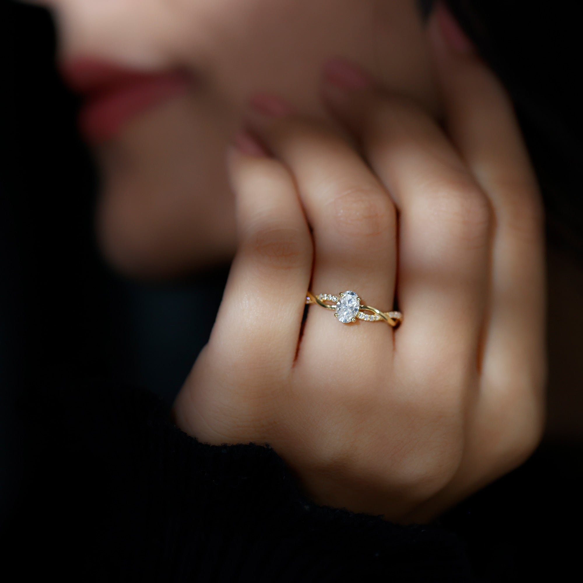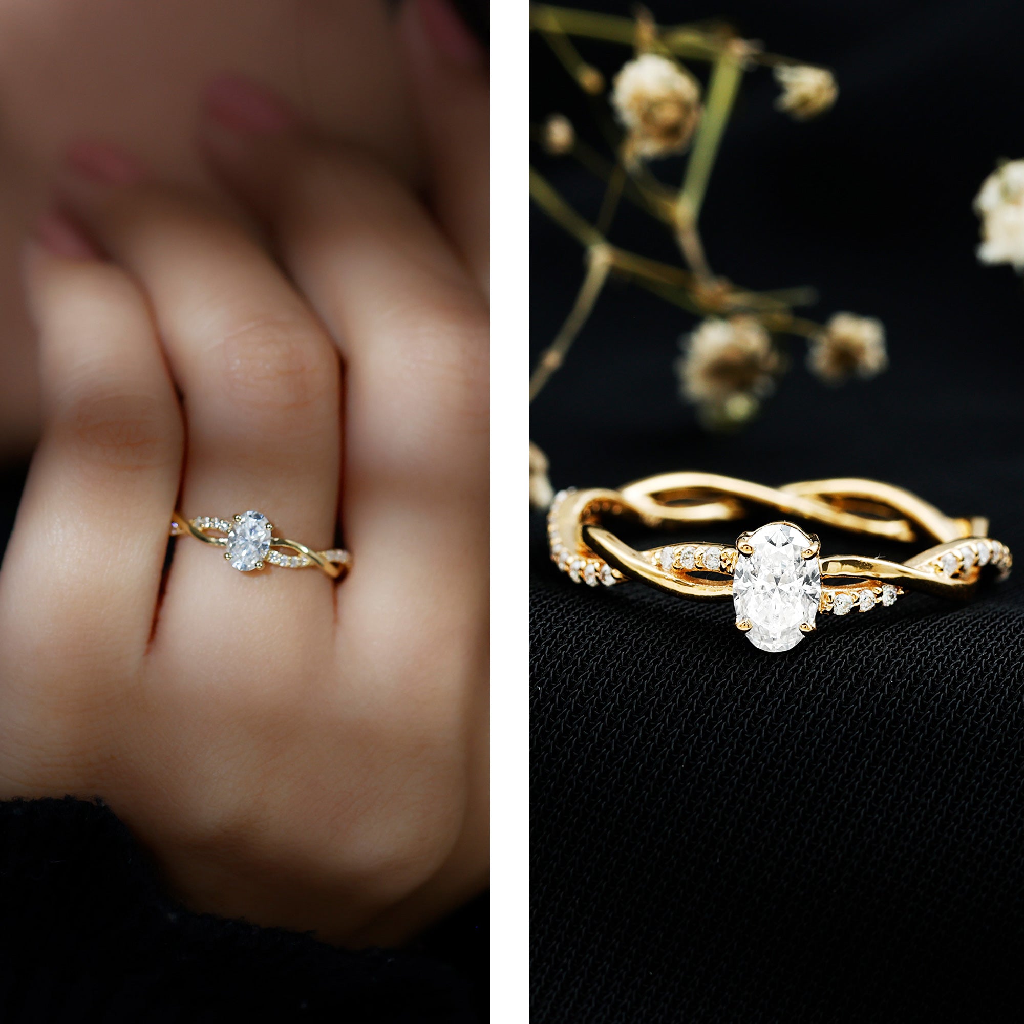 Step into a realm of elegance and timeless beauty with our Lab Created Diamond Promise Ring for Her, a stunning piece crafted to make your forever moment truly memorable. At the center of this gorgeous Solitaire Engagement Ring is a 4X6 MM Oval Shaped Lab Grown Diamond set in Prong Setting. With its EF color and VS clarity, the brilliance is as genuine as your love story. The Braided Band, adorned with delicate stones, represents the lovely intertwining of two lives, two hearts, and one shared future. Designed to win hearts, this Braided Ring perfectly combines classic charm with modern flair. Presented in a luxurious jewelry box, it is ready for a picture-perfect proposal or an unforgettable surprise. Available in US ring sizes from 3 to 13, it guarantees a perfect fit for every bride-to-be. This Half Carat Diamond Ring is a promise, made ethically and intended for those who believe in forever. Embrace love, style, and a future as bright as this Pre Engagement Ring. Because some moments deserve an short of being extraordinary.