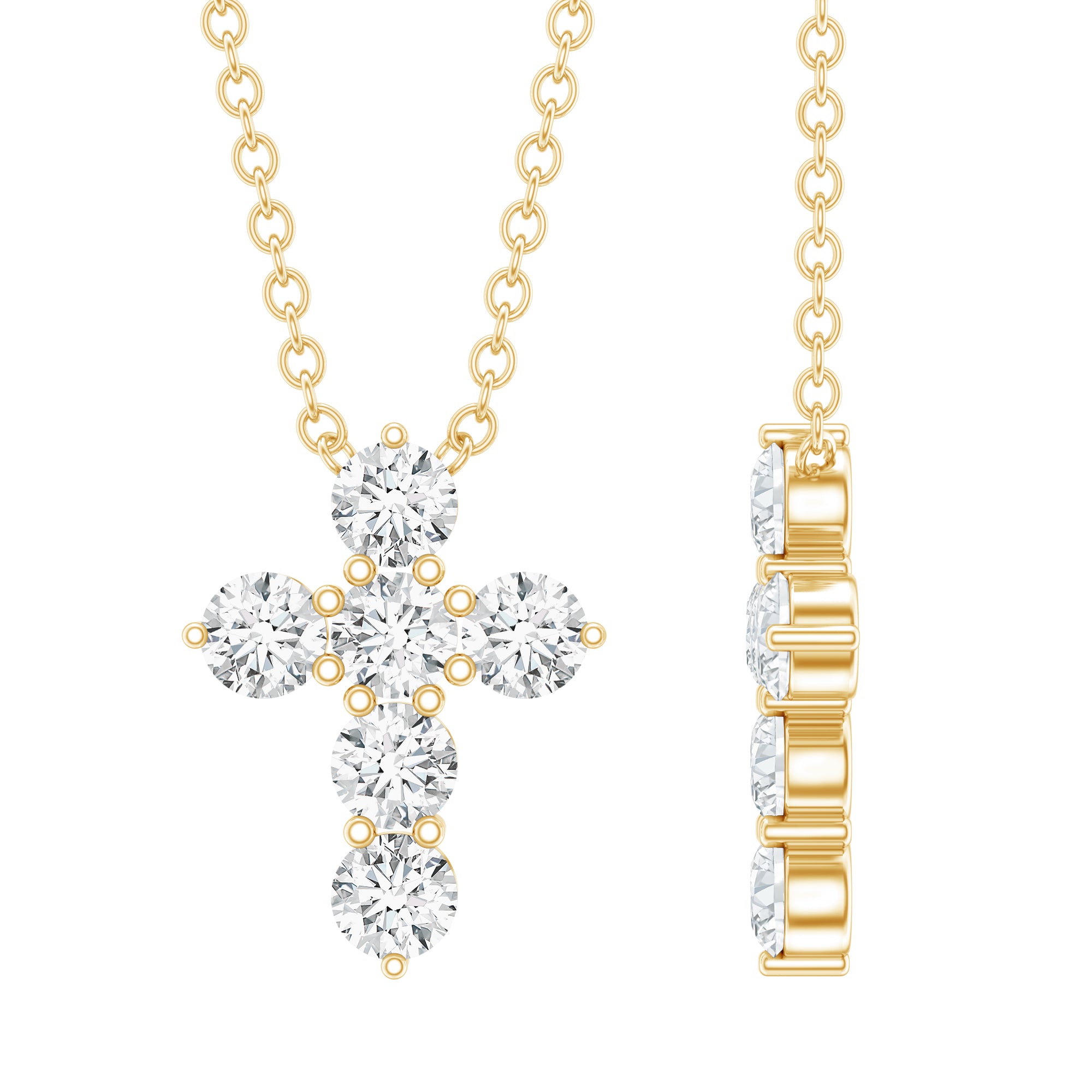 Embrace her belief with this Diamond Cross Pendant, which is embedded with Round Shape Lab Grown Diamonds in Prong-Setting. This Faith Necklace shines with EF-VS Quality Lab Grown Diamonds. This Cross Diamond Necklace is the perfect blend of elegance and faith which makes it a perfect present for Christmas to your loved one. One can adorn this all alone or can style it with other Layering Necklaces. We will ship this Signature Jewelry Box Packaging for safe and secured storage.