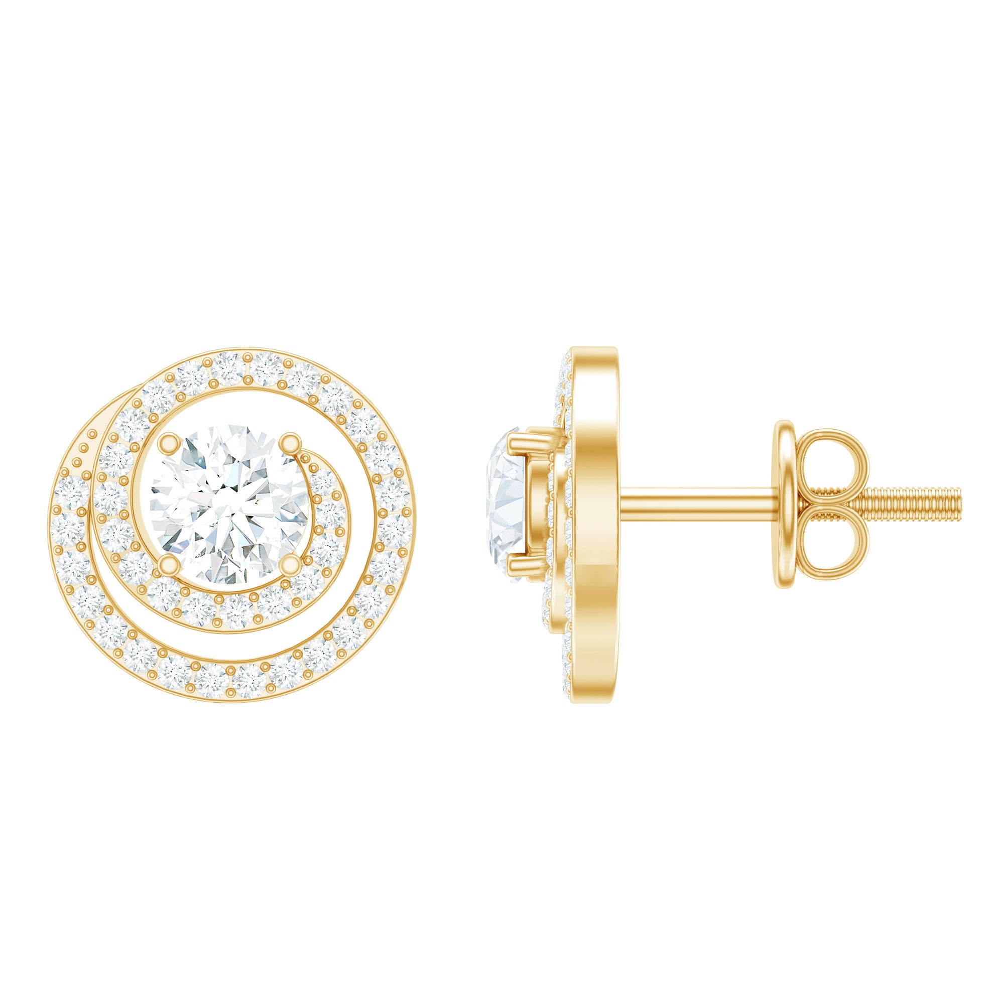 Make yourself the talk of the town by wearing these beautiful Diamond Swirl Earrings. These Stud Earrings are adorned with a center round cut lab-grown diamond set in a prong setting and their spiral is studded with round dainty gemstones, radiating more charm. We designed these Round Earrings with screw back closures for a comfortable and secure look, so you can wear them all day and night without any worry. And if you are looking for a meaningful gift, these Lab Grown Diamond Earrings make a thoughtful present for birthdays, anniversaries, weddings, or just to remind someone how much they mean to you. Whether it is for your mom, sister, wife, daughter, or best friend, a diamond is always the right way to say you are special".