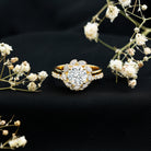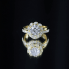 Why settle for an ordinary Diamond Ring Set when you can have this masterpiece, a perfect blend of vintage and modern charm - at its center sits an 8 MM round cut EF-VS quality diamond (lab grown) held in secure prong setting. Highlighting the center stone is a classic halo, curated with marquise shaped diamond stones set in beaded bezel setting that is sure to catch everyones eye. The matching ring guard perfectly compliments the design and creates this Wedding Ring Set a piece of versatile jewelry as you can wear them separately for an everyday style or stack them together for a statement look. Also, a diamond is an April birthstone, symbolizing everlasting love, strength, and wealth, making this Halo Engagement Ring with Wedding Band a meaningful and thoughtful accessory in your jewelry collection.