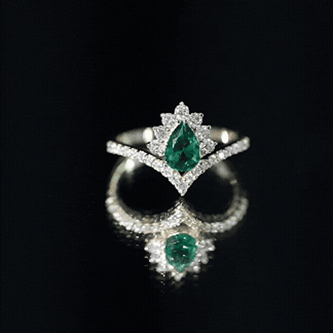 This Designer Engagement Ring features a captivating combination of lab created emerald and Diamond gemstones. The centerpiece is a 5X7MM pear shaped lab created emerald, delicately held in a three-prong setting. Surrounding this stunning center stone are precious round cut Diamond gemstones in a half halo. The gracefully curved chevron-like shank is also decorated with round cut diamonds, creating a crown-like appearance. Designed for those who think love should be bright and joyful, this Emerald and Diamond Ring combines contemporary elegance with everlasting beauty. It comes in finger sizes ranging from 3 to 13 (US standard), making it a considerate option for a proposal, anniversary, or simply a way to express your love once more. The gentle sparkle and hue of the AAAA quality lab grown emerald, along with the exquisite HI-SI quality diamonds, lend this Teardrop Engagement Ring a magical feel, like something out of a dream. It serves as a perfect way to commemorate a promise, a moment, or a cherished memory. Whether you are embarking on a new journey or honoring one you have already shared, this Emerald Engagement Ring stands as a symbol of love that is designed to shine every single day.