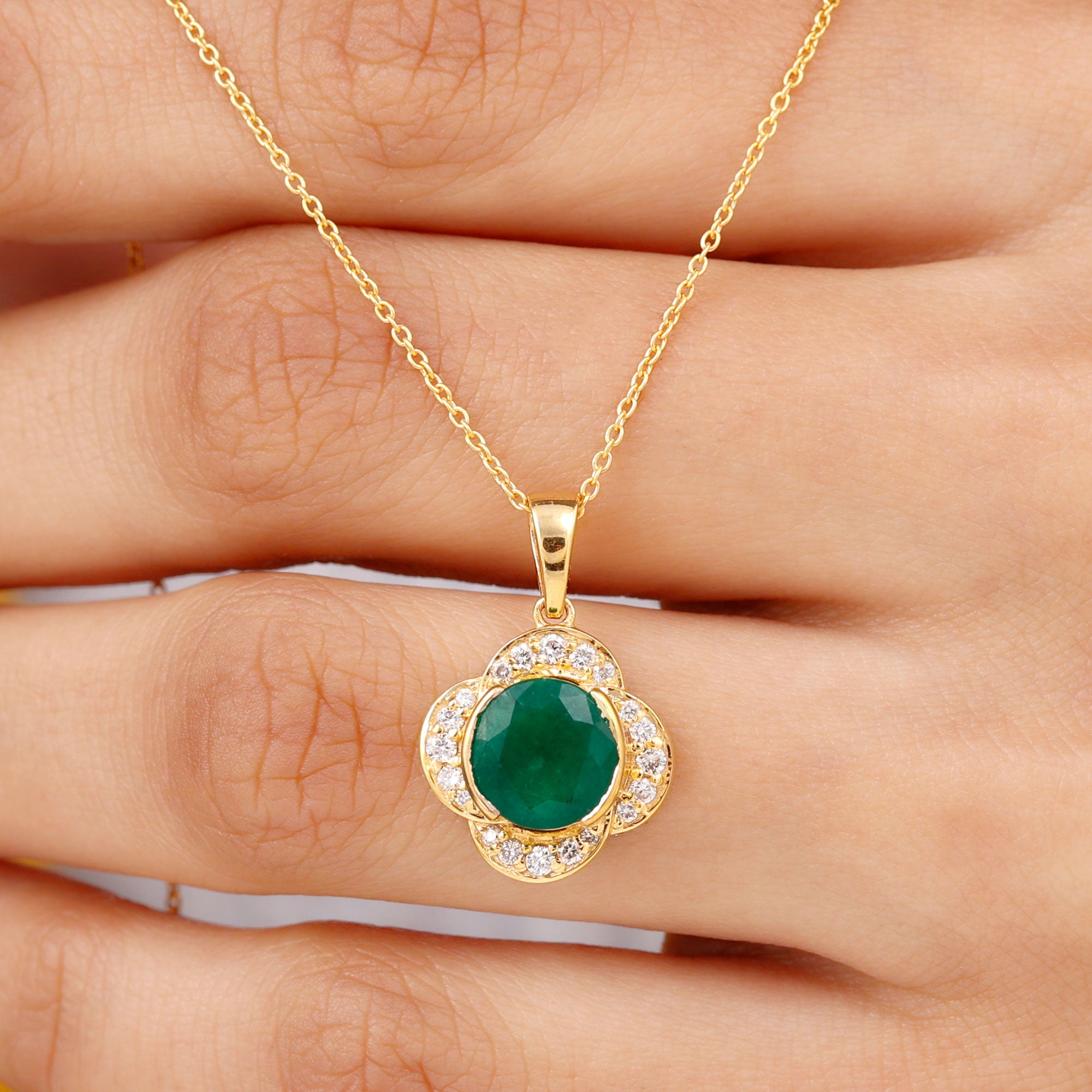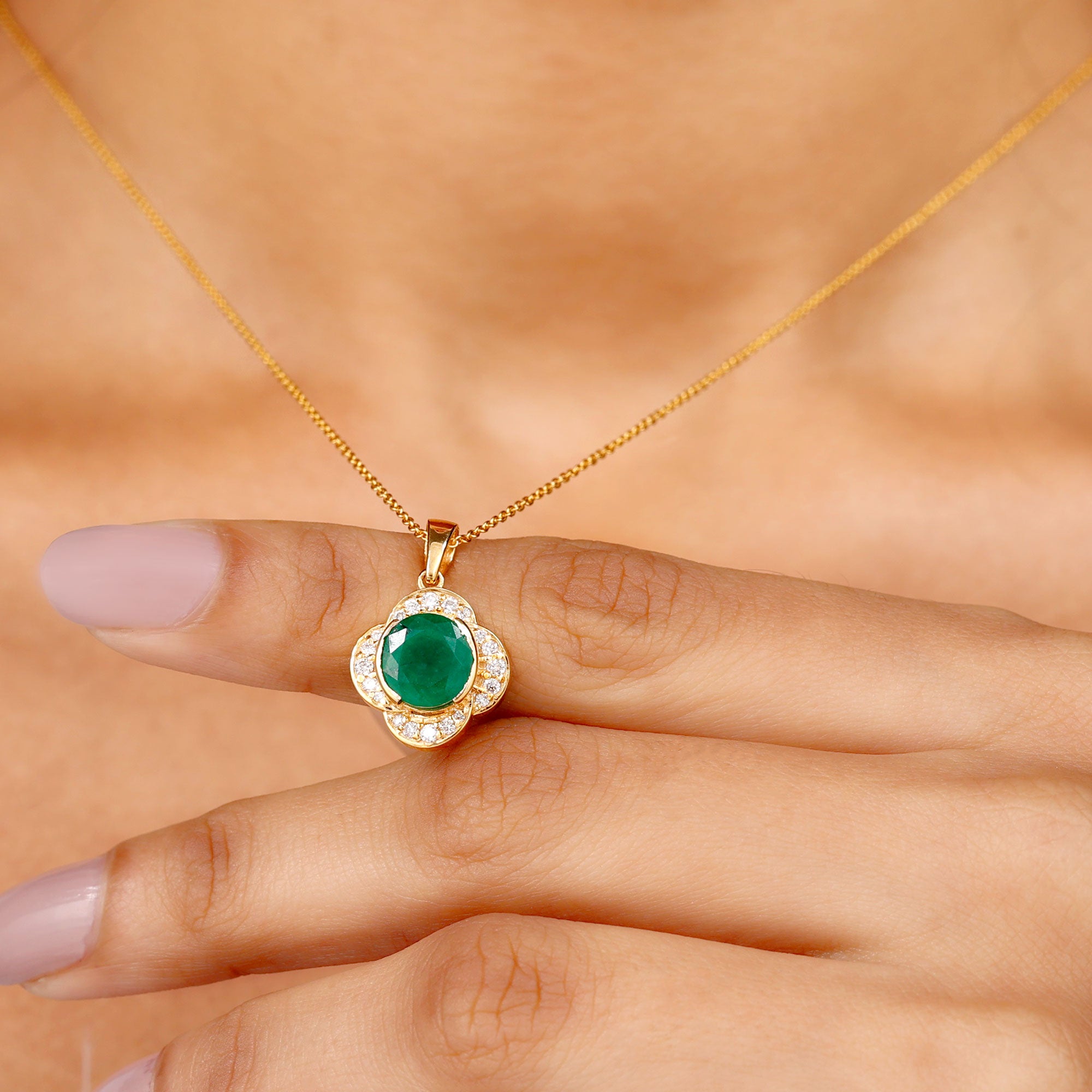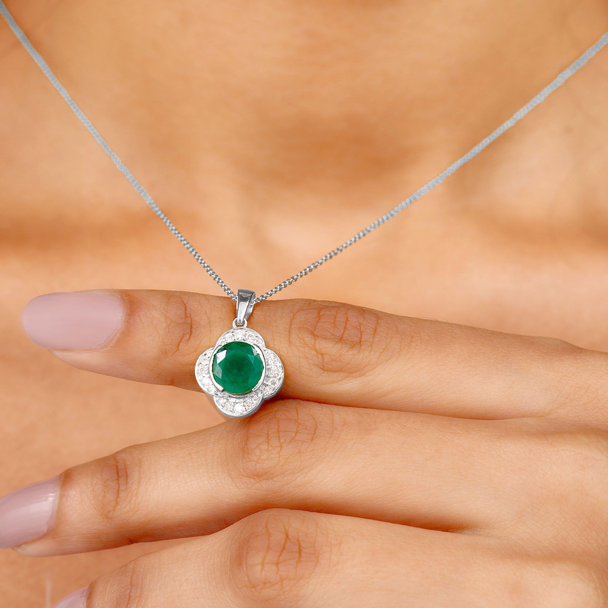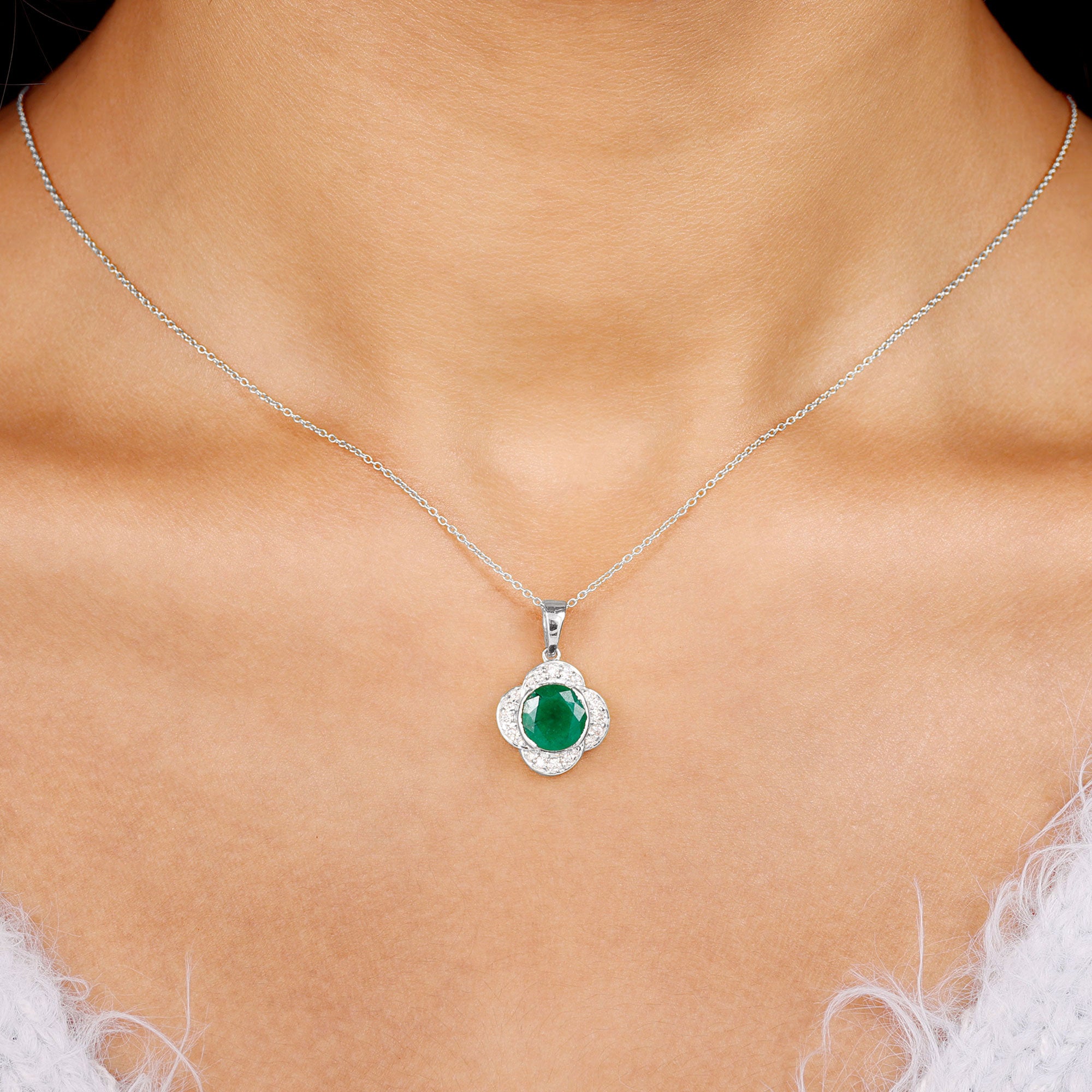 Lab Grown Emerald and Diamond Flower Necklace For Her