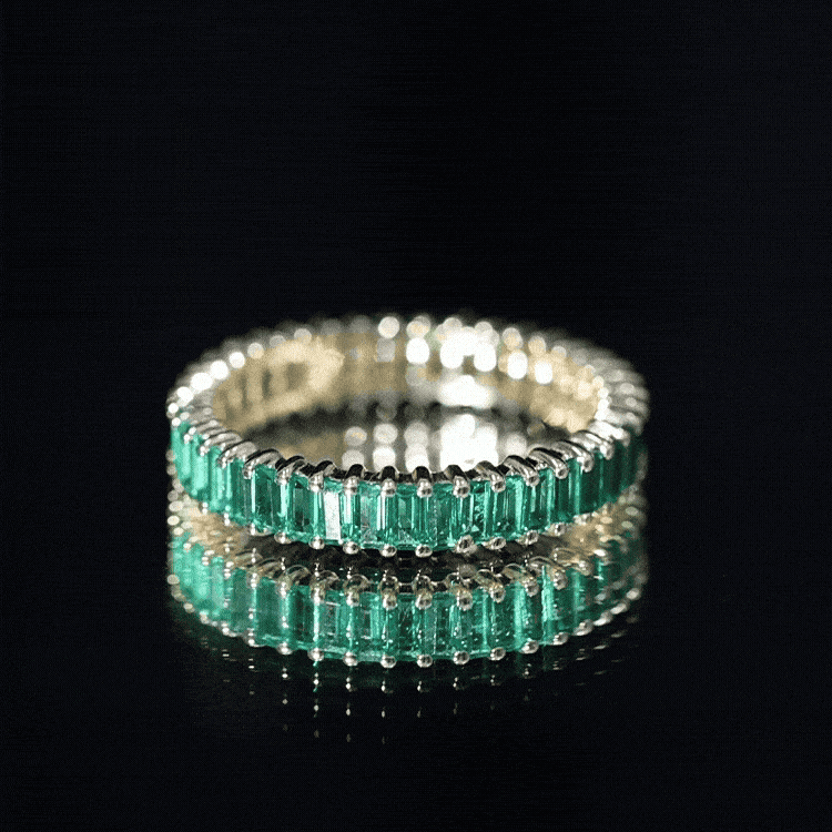 Elegantly designed for everyday styling, this Lab Cultured Emerald Wedding Ring is adorned with Baguette Cut Lab Created Emerald in Prong Setting. Complement your outfit with this Stackable Ring for an elegant look. This Emerald Baguette Ring is perfect to make your love bloom which makes it a perfect symbol of timeless devotion along with modern elegance. This Emerald Eternity Band can be worn as a stable band to achieve a classic signature look. This ring beholds the shine of AAAA quality Emerald and will add extra shine to the celebration.