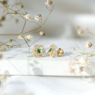 Lab Grown Emerald Diamond Flower Stud Earrings with Screw Back