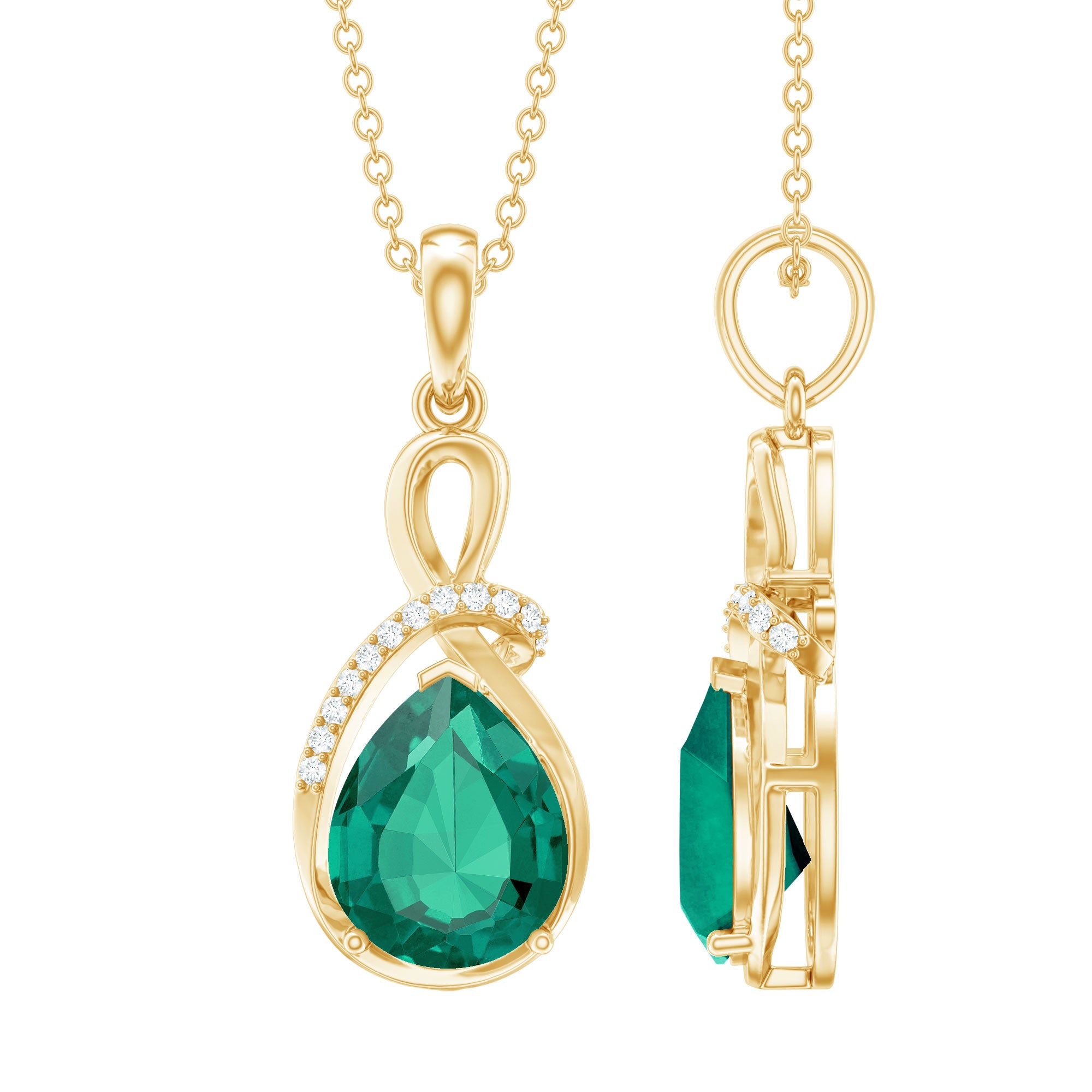 Elevate your gift-giving with our exquisite Minimal Lab Created Emerald Pendant Necklace. This stunning piece is designed to captivate her heart with its timeless elegance. The centerpiece boasts a lustrous 8x10 mm Pear Shaped Lab Created Emerald, encased in a delicate metal frame embellished with Round Lab Grown Diamonds on one side. Each diamond sparkles, echoing the romantic tales whispered by the soul of the Aaaa Quality Emerald. The craftsmanship and attention to detail make this necklace a symbol of enduring love and sophistication. Crafted by Rosec Jewels, a master in creating extraordinary jewelry from lab grown gemstones, this Emerald Diamond Necklace is not just a piece of jewelry but a radiant expression of your feelings.