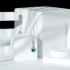 Lab Grown Emerald Drop Necklace with Silver Chain