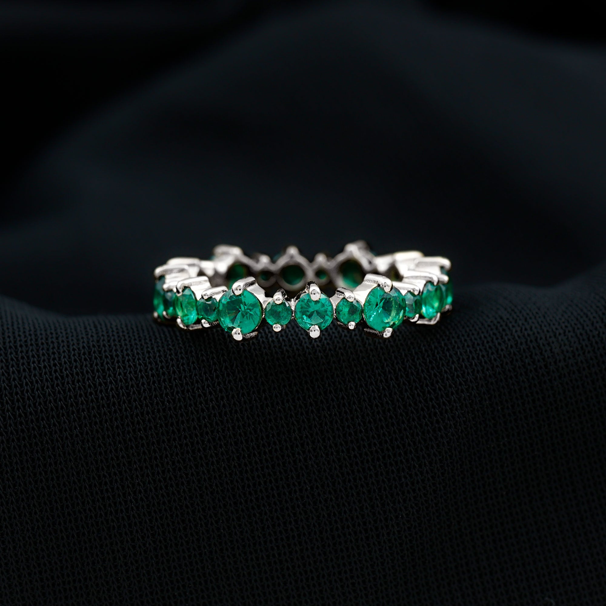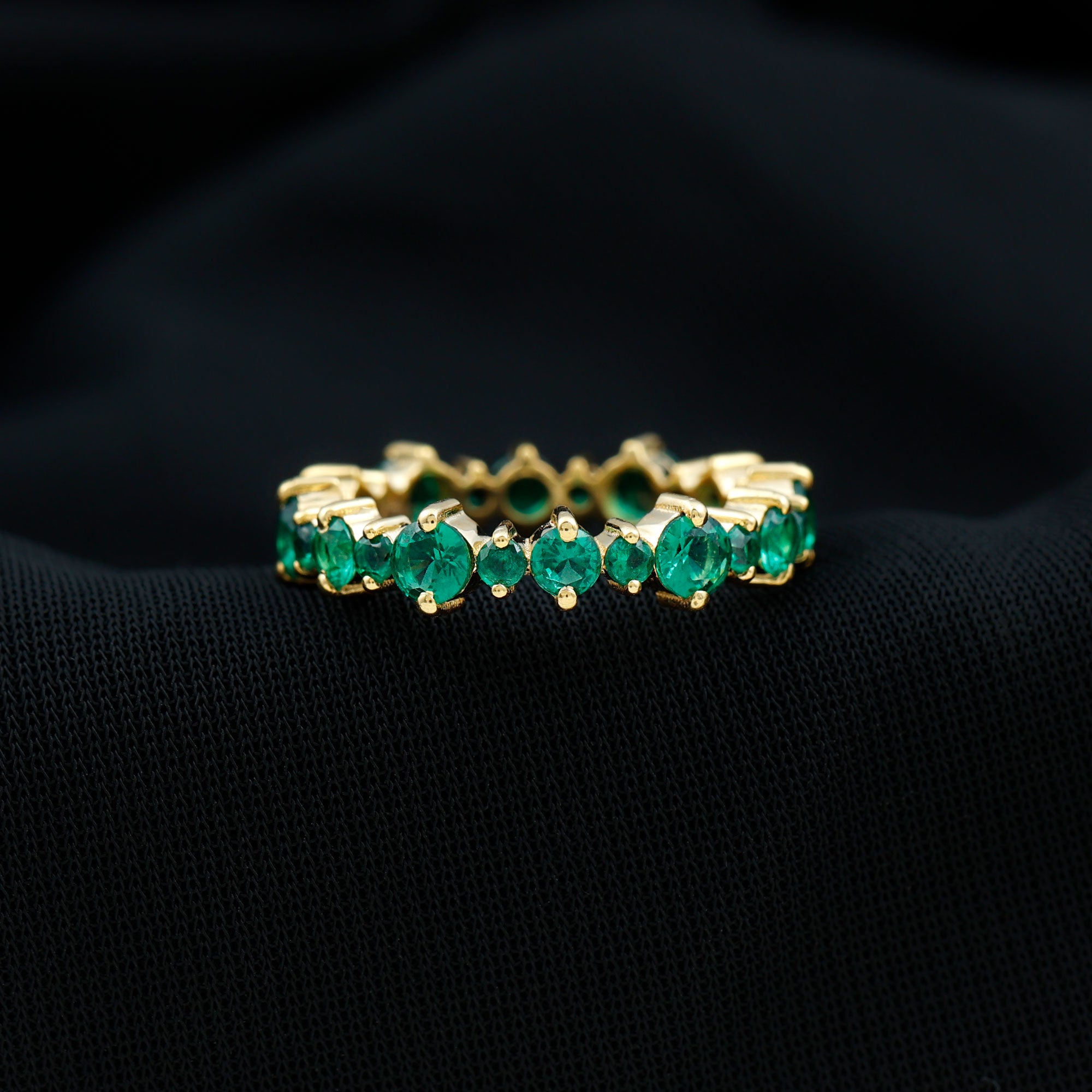 Commemorate your everlasting love and unforgettable memories with this Full Eternity Ring. Designed to symbolize infinite devotion, this Wedding Anniversary Ring features vibrant Round Shape Lab Created Emerald stones in 2 mm and 3 mm sizes, carefully set in an alternating pattern that creates a beautiful rhythm of color and sparkle all around the band. Each Lab Emerald shines with a rich green hue, representing hope, renewal and enduring commitment. The continuous circle of gemstones reflects the never-ending bond shared between two souls, making this Lab Grown Emerald Eternity Ring an ideal choice for marking a special anniversary, milestone or simply as a meaningful gift to show how much you care. Designed to capture hearts, this Lab Grown Emerald Ring offers a delicate yet striking appearance that sits gracefully on the finger. Its timeless design ensures it remains elegant through the years, perfectly complementing any style, from classic to contemporary. This Emerald Anniversary Ring captures the essence of lasting love, a gentle reminder of the promises kept and the beautiful journey shared. A perfect way to celebrate today, tomorrow and always.