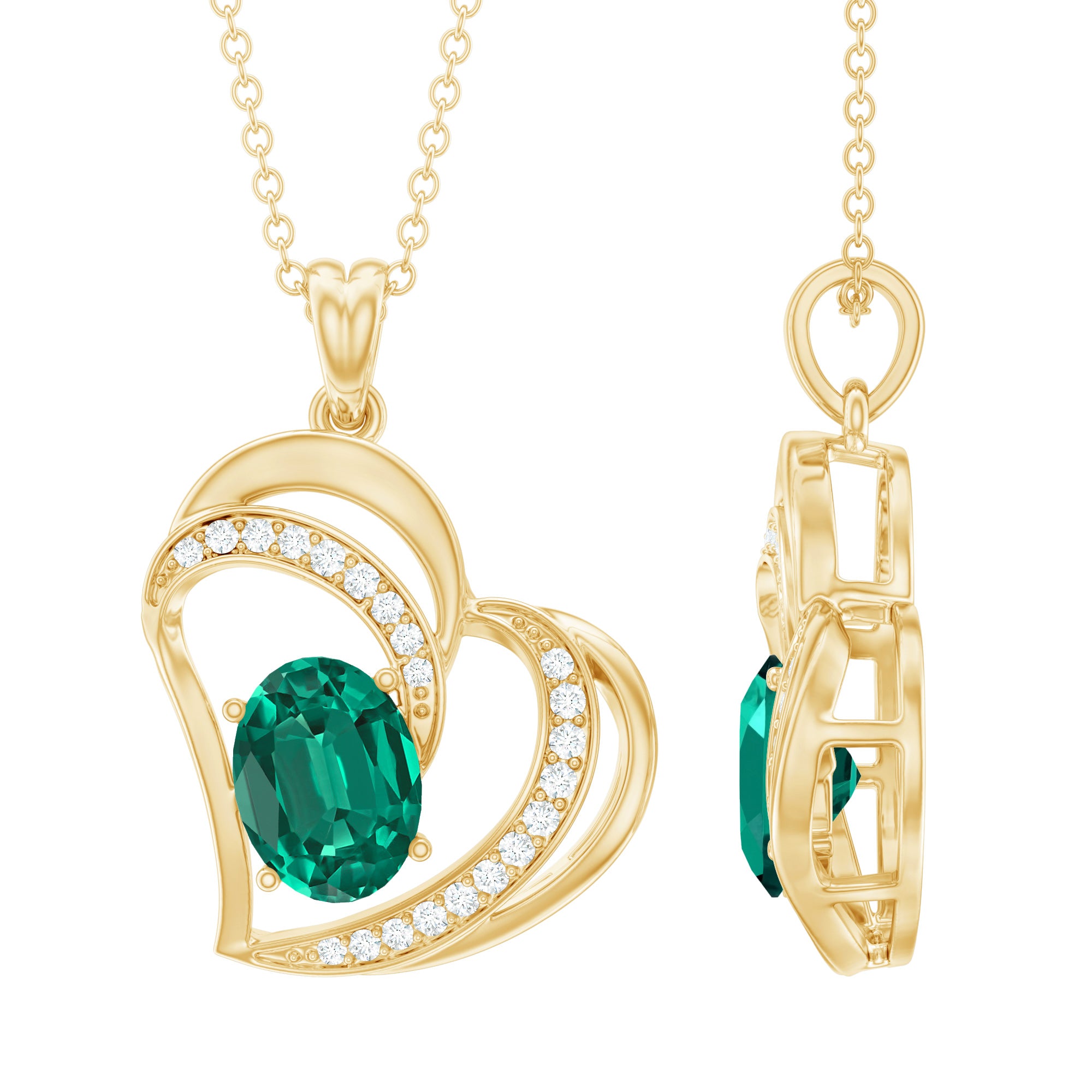 Lab Grown Emerald Heart Pendant Necklace with Diamonds