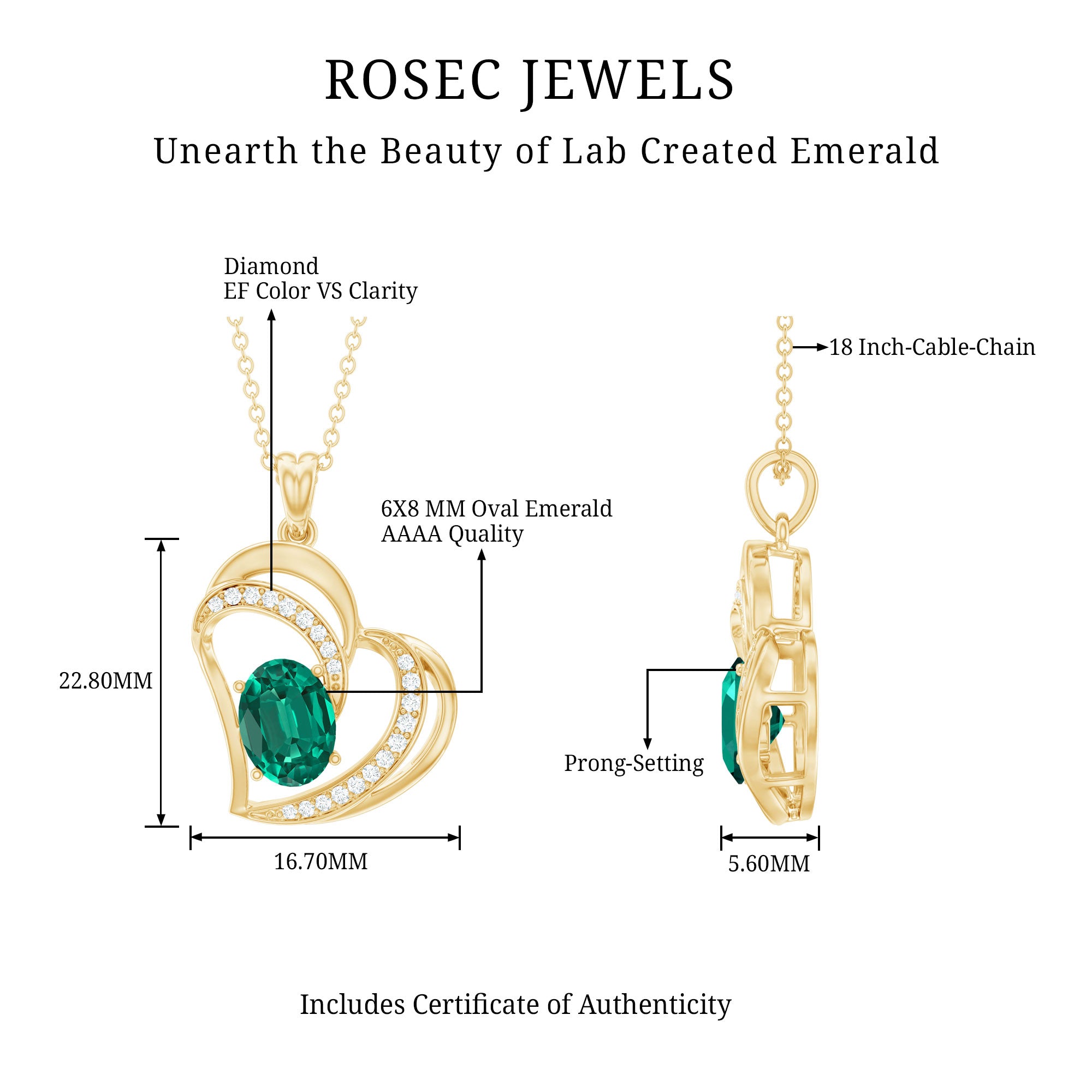Love blooms in the heart of this mesmerizing Heart Pendant Necklace, adorned with a slantly placed 6x8 mm Oval Shape Emerald. Meticulously crafted, the Minimal Necklace is highlighted by shimmering Lab Grown Diamond gemstones. A testament to timeless elegance, this lab grown Emerald and Diamond Necklace reflects the commitment to sustainable luxury by Rosec Jewels. Elevate your style with this symbol of love, where innovation meets sophistication.
