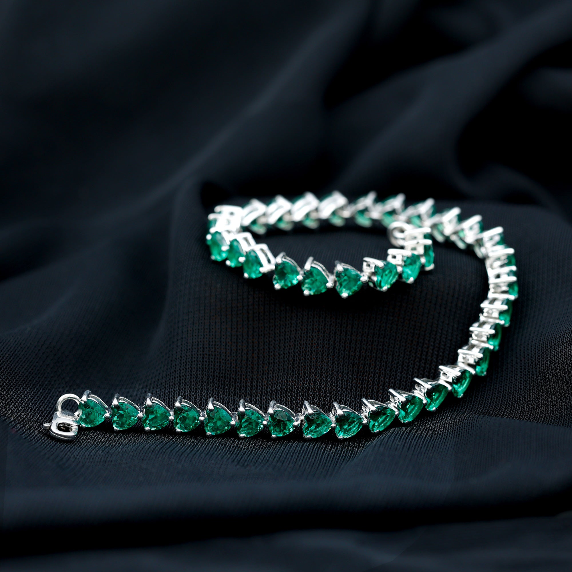 A Spectacular and Phenomenal Antique Lab Created Emerald Heart Bracelet embellished with Heart Shape Lab Created Emerald is beautifully set in a prong setting and it will give you a dazzling look. An outstanding design accessory is an ideal gift for your loved ones.