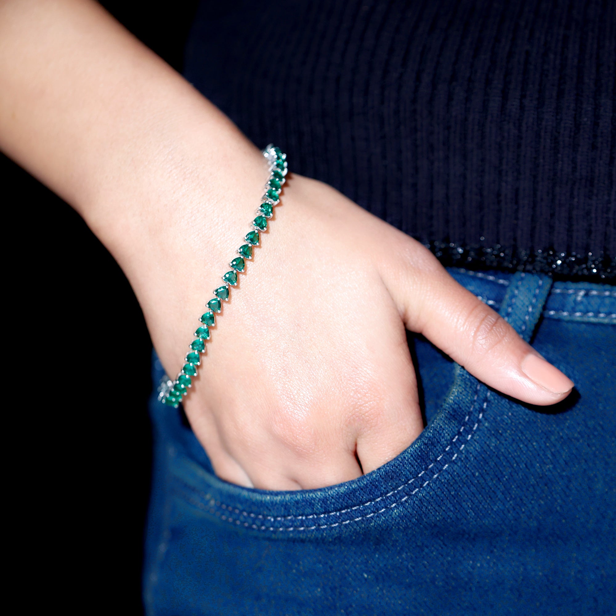 Lab Grown Emerald Heart Tennis Bracelet