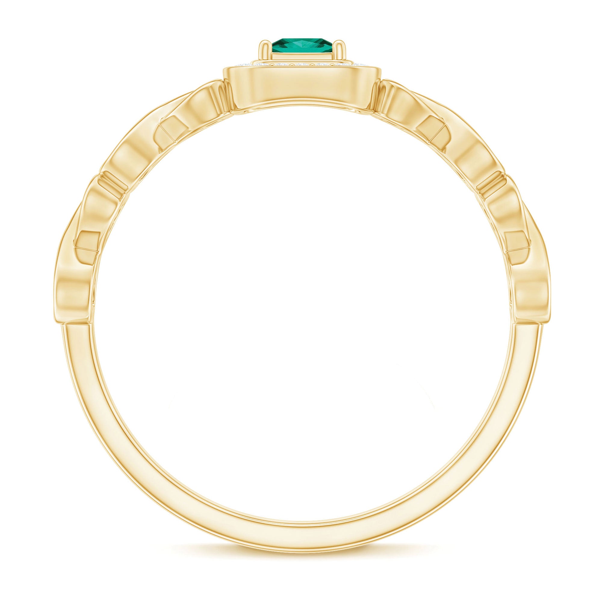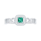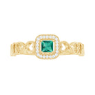 Lab Grown Emerald Princess Cut Promise Ring with Diamond Halo