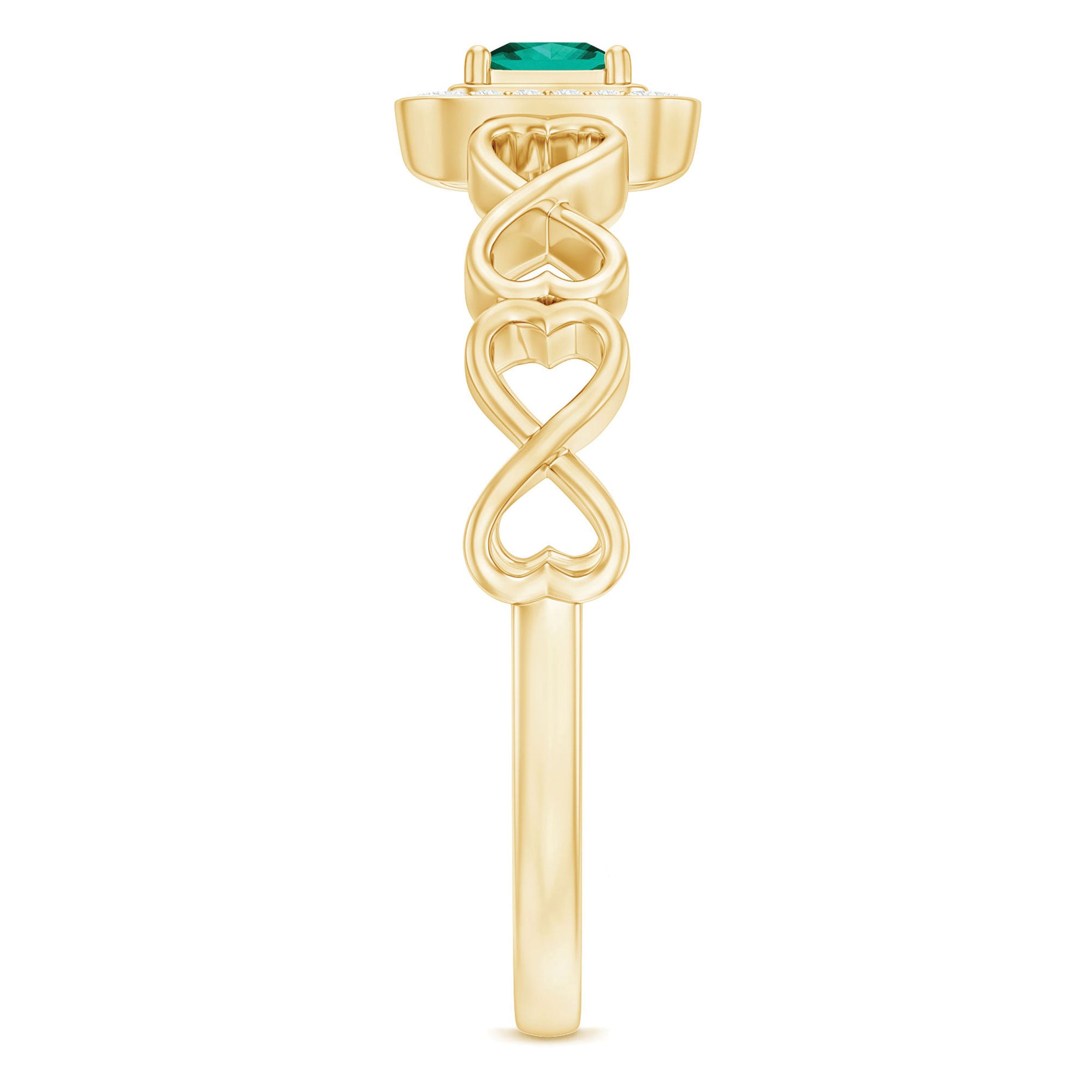 A promise is a vow of love, trust, and a future together. This Princess Cut Promise Ring beautifully captures that sentiment, turning a simple promise into a lasting symbol she can wear. This Commitment Ring for her features a vivid 4 mm Princess Cut Lab Created Emerald set in Prong Setting, celebrated for its lush green hue that represents growth, renewal, and harmony in love. Surrounding it is a sparkling Halo of Diamond gemstones, adding brilliance and drawing the eye to the bold elegance of the center stone. The band is crafted with a Heart Infinity Knot Shank, a design that intertwines the heart and infinity symbols to represent endless love and devotion. This Aaaa Quality Emerald Promise Ring is a powerful reminder that your bond has no limits and is made to last forever. Romantic and meaningful, this Pinky Promise Ring is more than a gift, it is a keepsake she will treasure always. She will surely love this Lab Grown Emerald Ring as a reminder of your promise, keeping it close to herself as a symbol of the love you share.