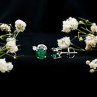 Lab Grown Emerald Screw Back Earrings With Diamond