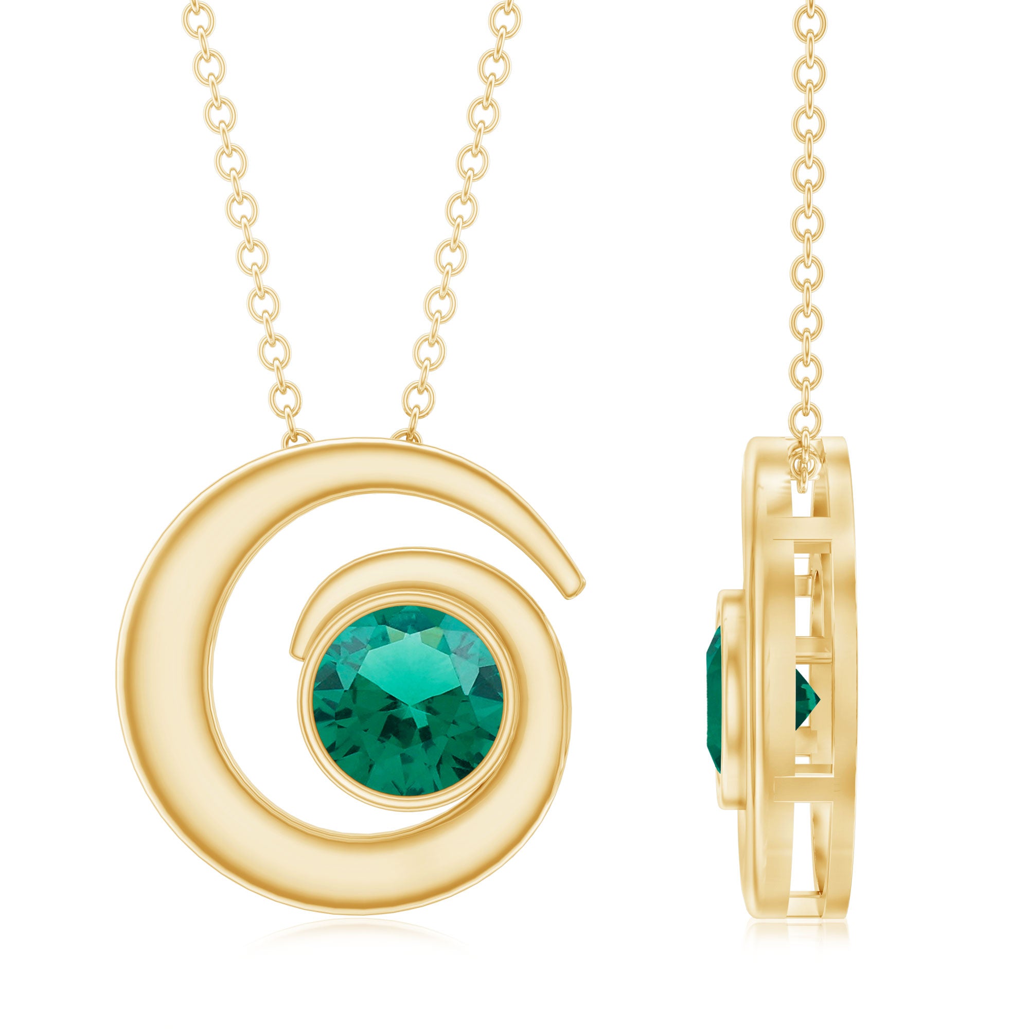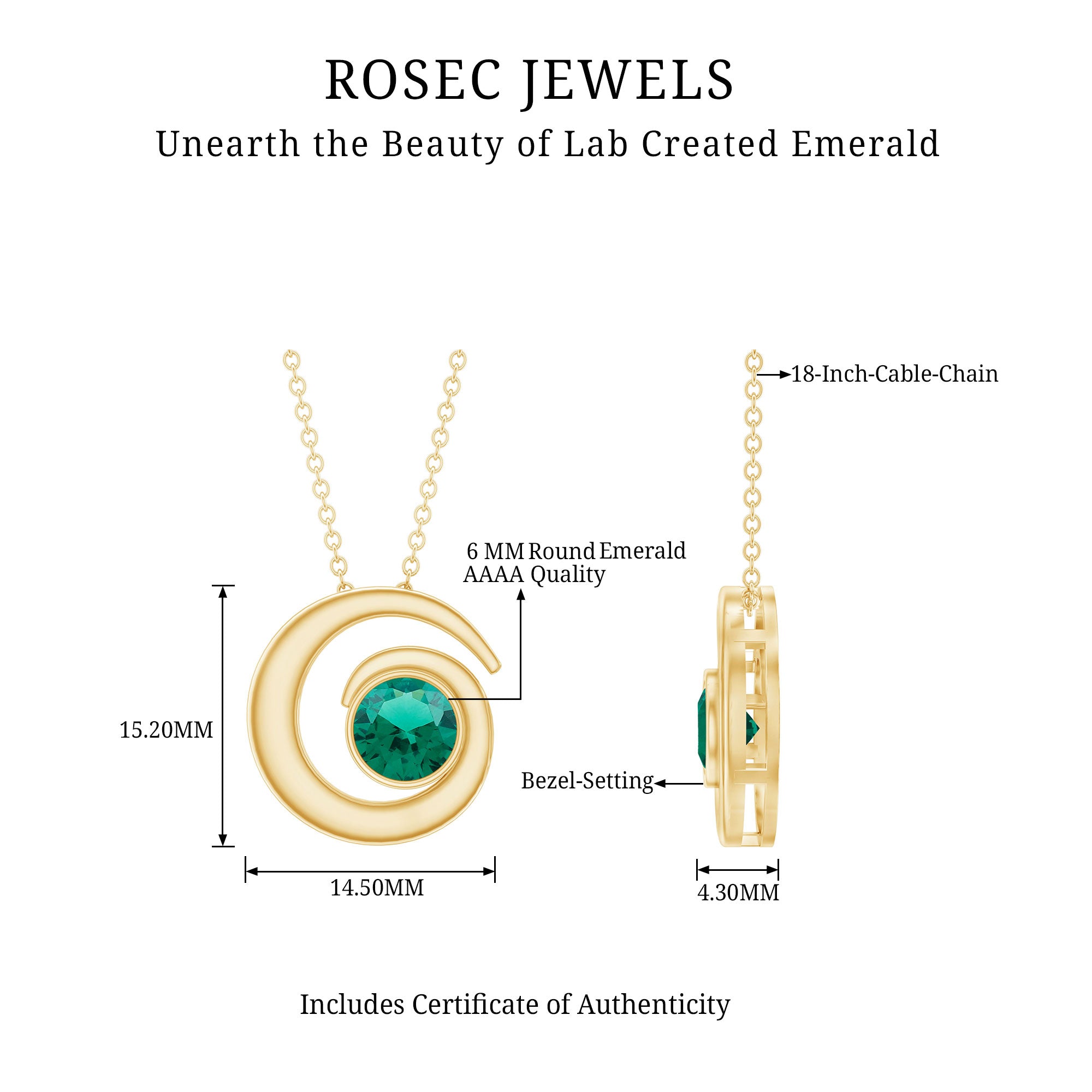 Delicate and captivating, this Emerald Pendant Necklace effortlessly combines elegance with sustainability. Set in Bezel Setting, the 6 MM Round Shape Emerald gemstone radiates a mesmerizing green hue with a swirl pattern, symbolizing timeless beauty. Experience the pinnacle of craftsmanship with AAAA Quality Emerald, which embodies a commitment to aesthetic excellence. This Solitaire Pendant Necklace will be delivered to you in a signature jewelry box with authenticity certificate.
