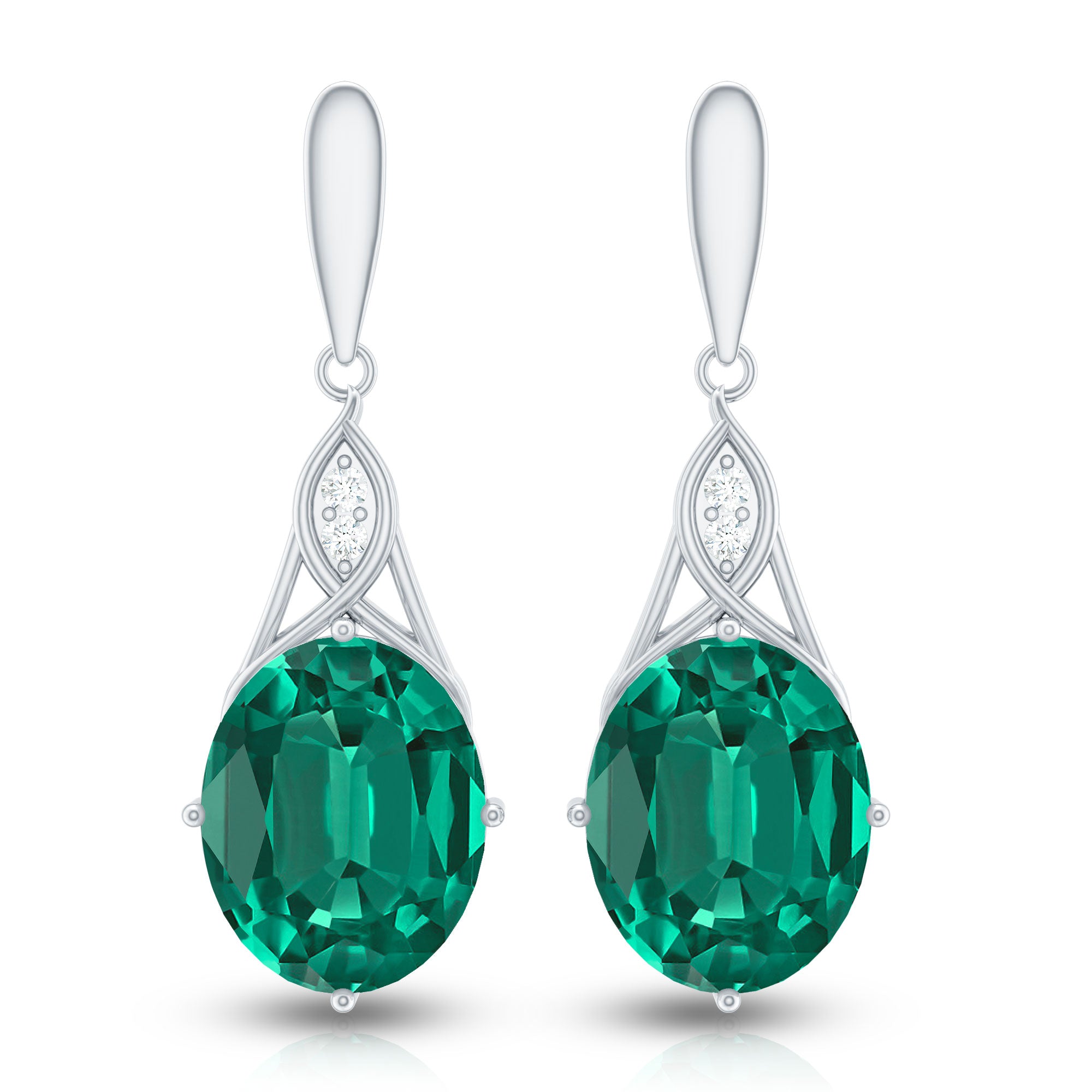 Lab Grown Emerald Statement Dangle Earrings with Diamonds