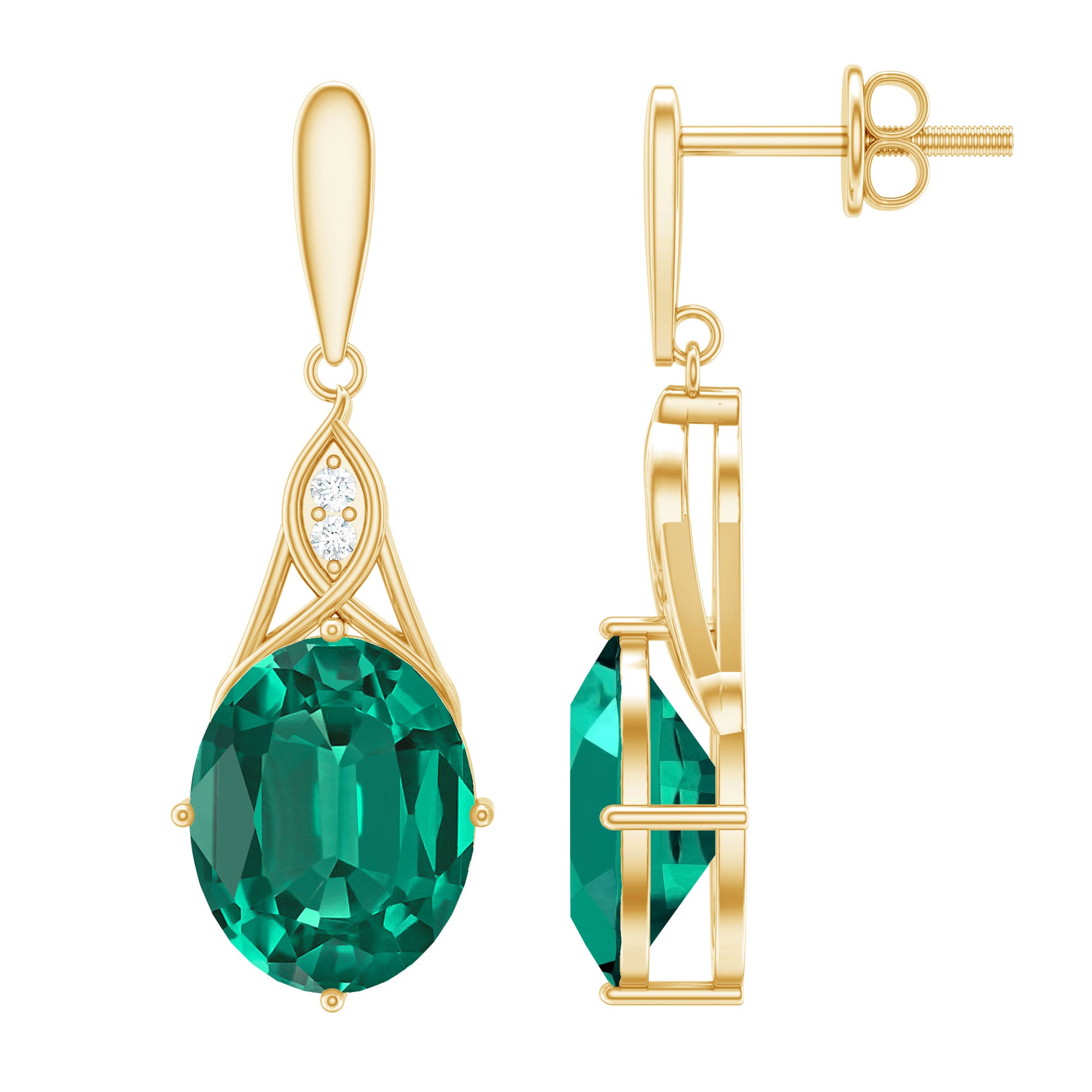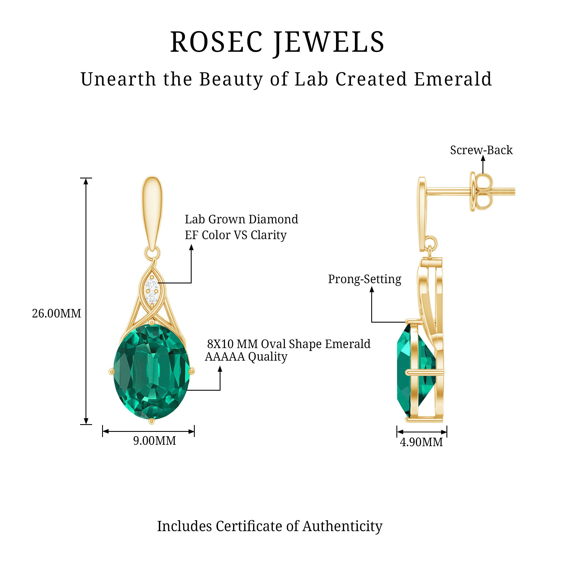As your love blossoms and thrives, celebrate its growth with a meaningful gift, the Statement Emerald Dangle Earrings. A captivating 8x10mm Oval Shaped Emerald (Lab Grown Emerald) takes center stage, making a bold declaration of love, while Round Lab Grown Diamond gracefully adorns the top, completing a stunning ensemble. This Emerald Diamond Earrings adds a touch of grace to any attire, ensuring shell cherish it dearly. These earrings will sparkle with the Aaaa quality Emerald and Ef-Vs Diamond Quality Diamond. These earrings immerse yourselves in the fusion of natures green mystique and the timeless dazzle of Diamonds, a harmonious symphony of luxury, prosperity, and enduring love. Elevate your elegance, embrace the enchanting benefits of Emerald and Diamond fusion, where beauty knows no bounds