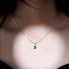 Lab Grown Emerald Teardrop Pendant Necklace with Silver Chain,