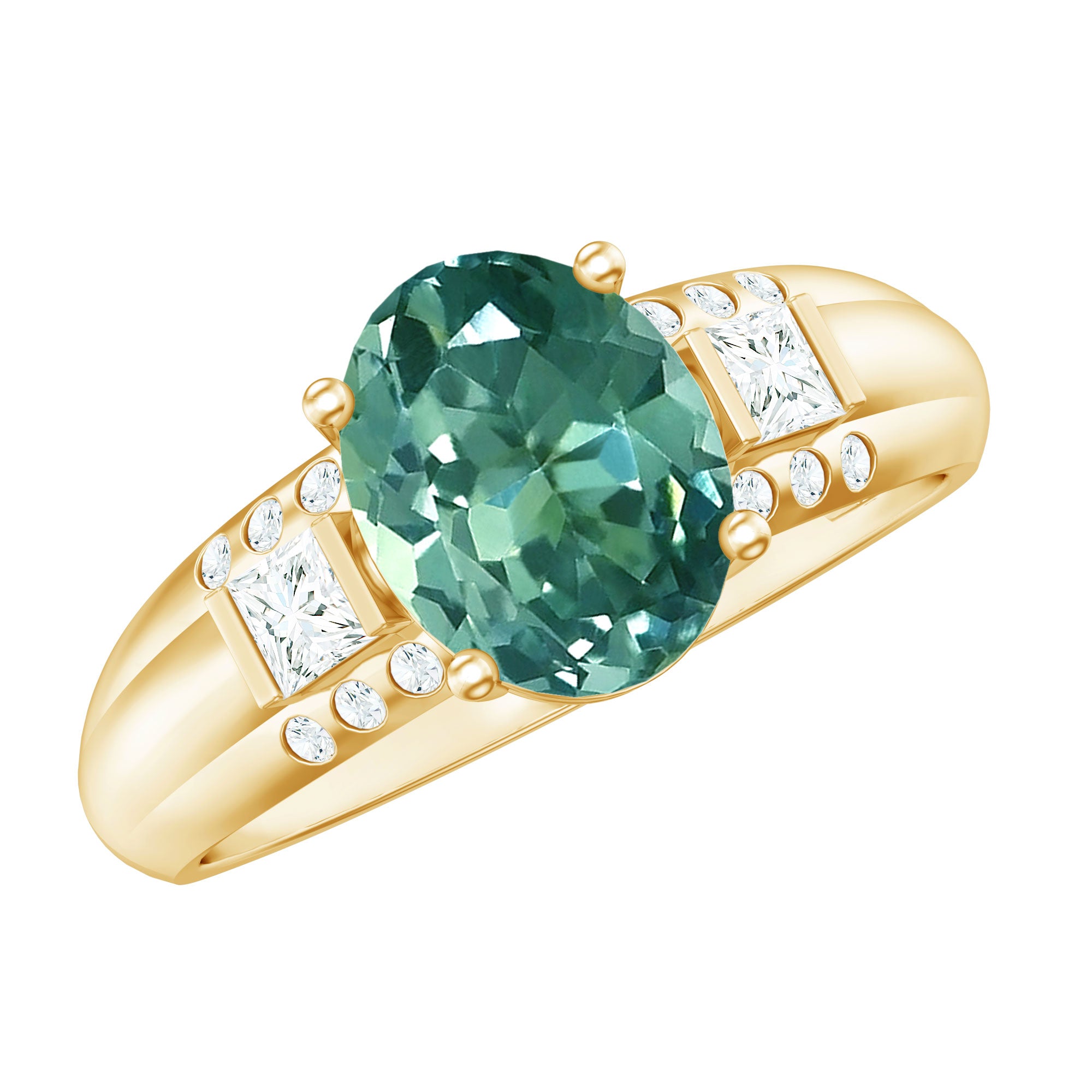Lab Grown Green Sapphire Solitaire Oval Engagement Ring with Moissanite