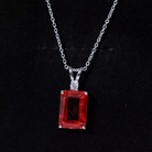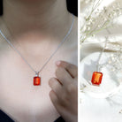 Lab Grown Orange Sapphire 10X14mm Emerald Cut Necklace With Silver Chain