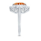 Lab Grown Orange Sapphire Vintage Engagement Ring with Moissanite Halo